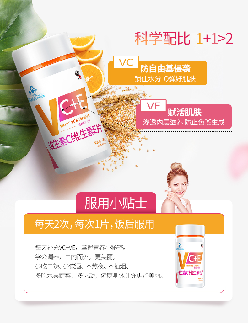 【买2送1】推荐这款维生素C+维生素E片!能有效增强皮肤抵抗能力,防止色素沉着,坚持食用,皮肤越来越白皙~一个秋冬,让您悄悄美白~