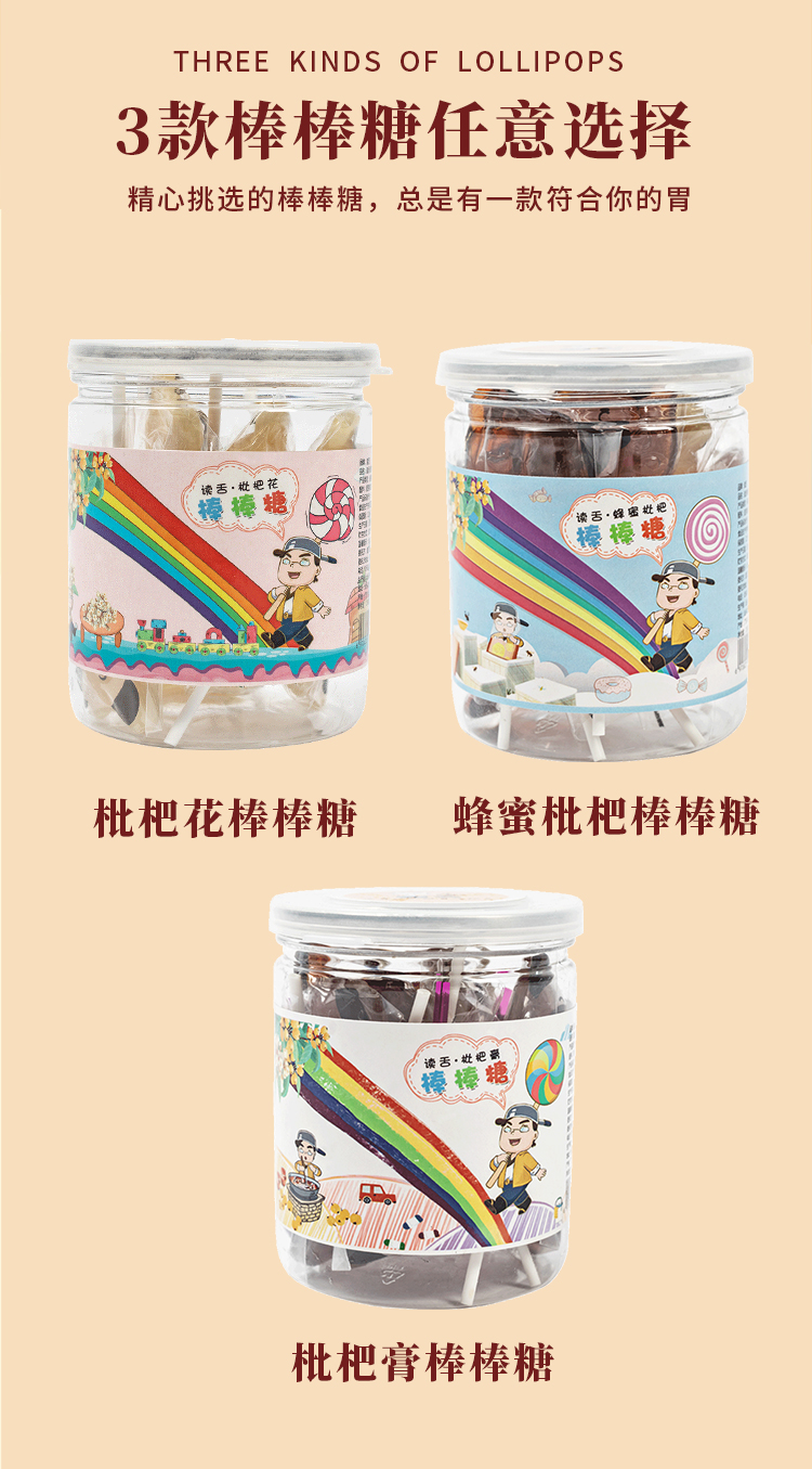 读舌蜂蜜枇杷棒棒糖,同年的味道,儿童水果味休闲零食,卡通可爱组合糖果,总有一款适合你的胃。