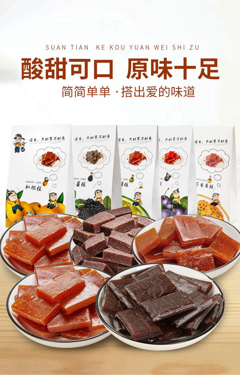 读舌桑葚山楂糕片水果味,软糖山楂条,儿童办公室休闲零食,酸甜可口,原味十足,简简单单,搭出爱的味道。