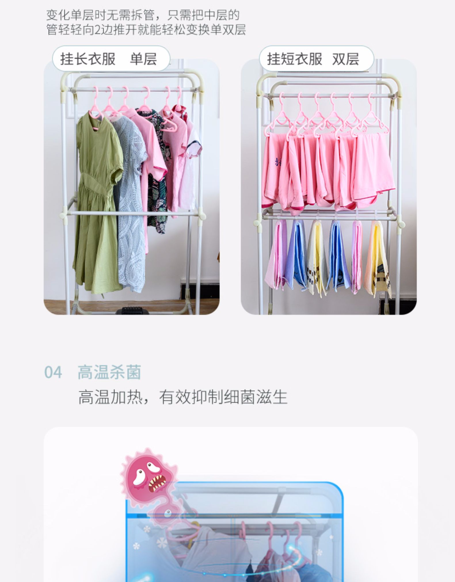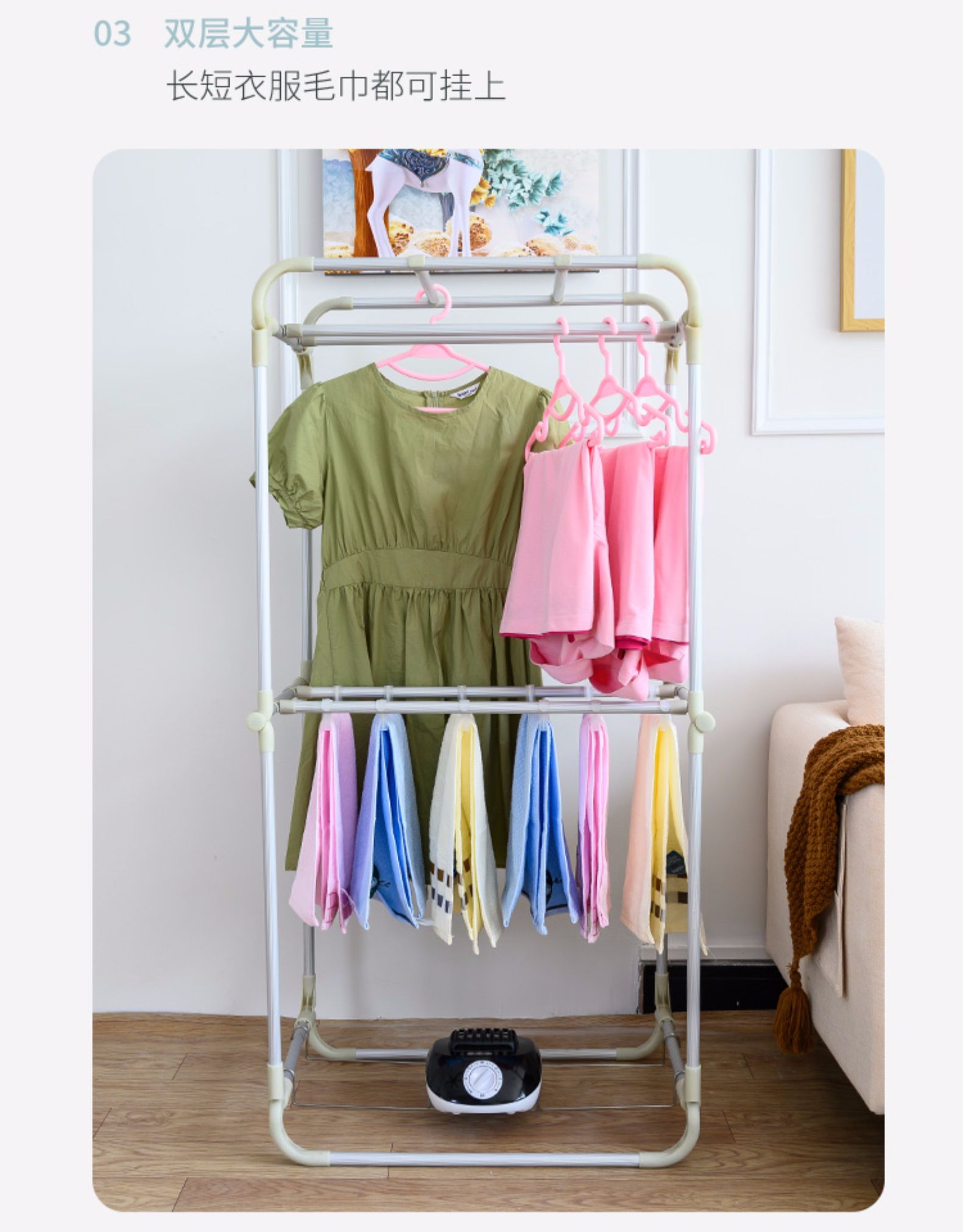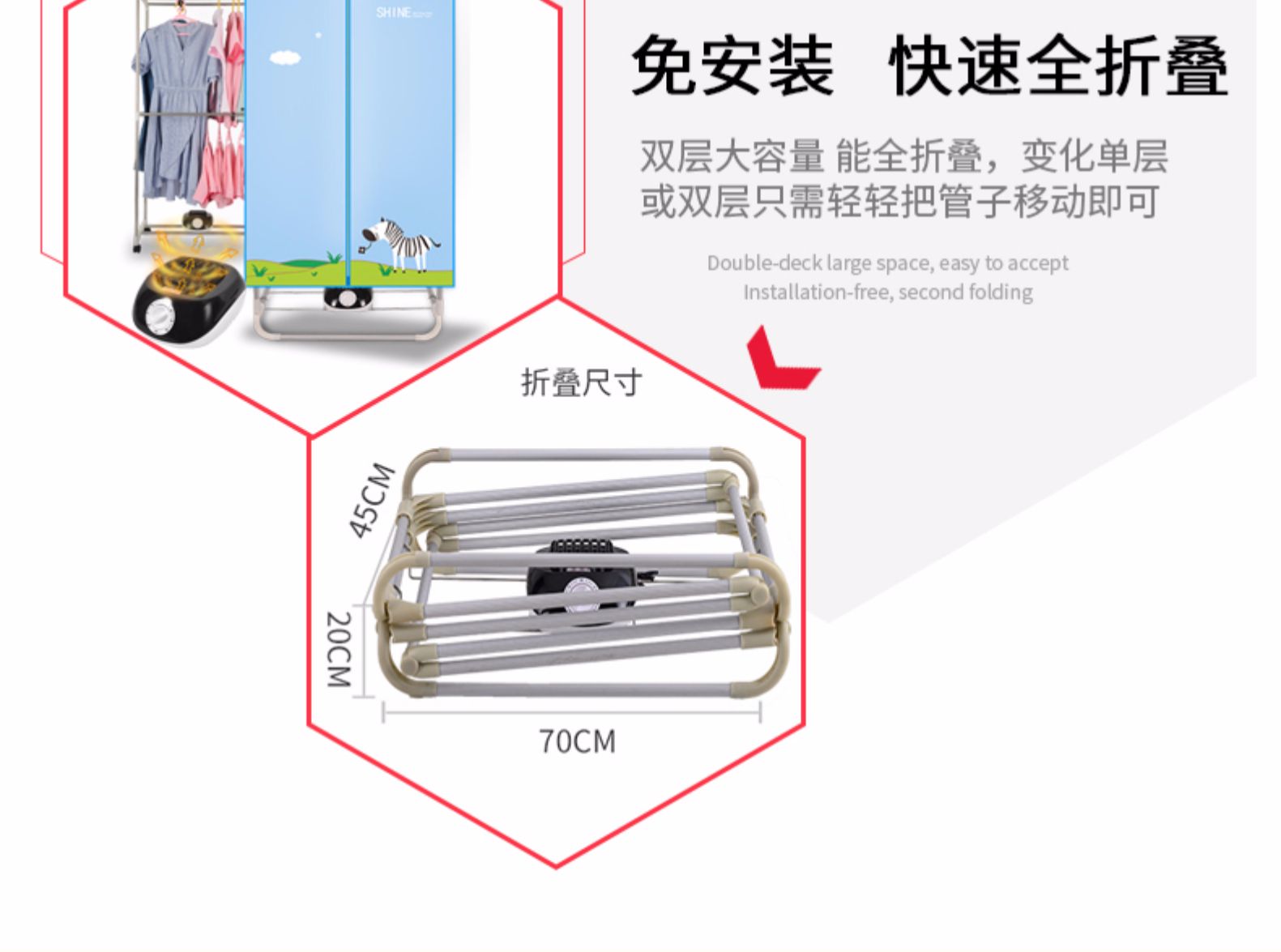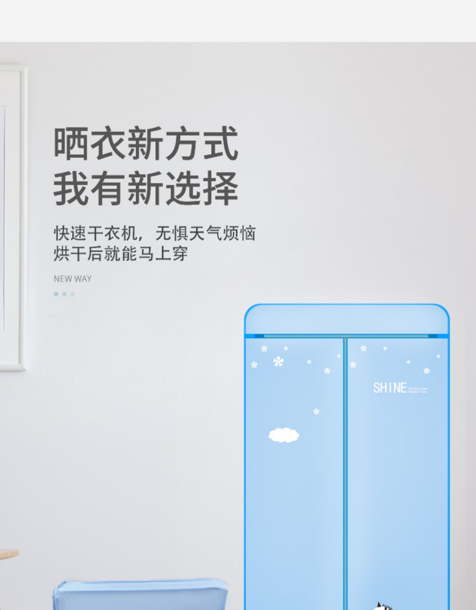【赠运费险】阴天,连续暴雨天,也不担心衣服干不了!整个家用小型衣服烘干机!加固不锈钢管支架,1000W即开即热~静音省点,加速烘干!让你四季都有健康干衣穿!还免安装,懒人必备!!