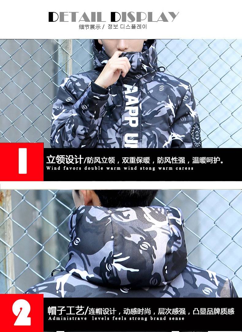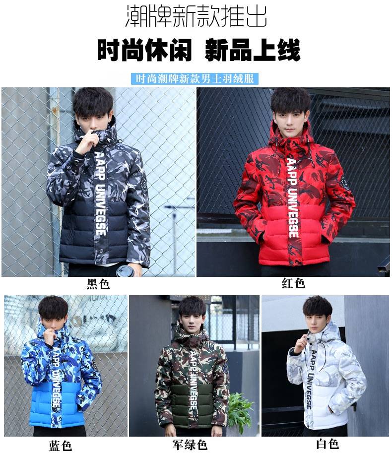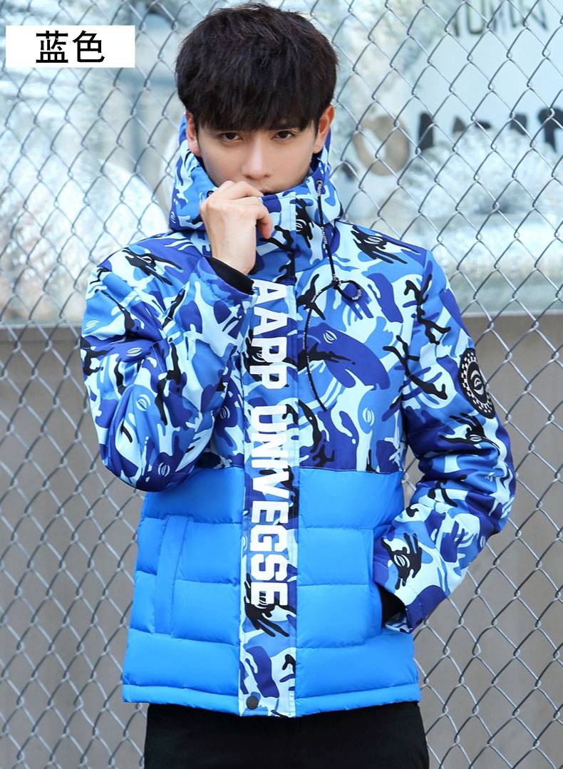 2019新款羽绒服男中学生韩版短款青少年男装冬季外套男士迷彩衣服