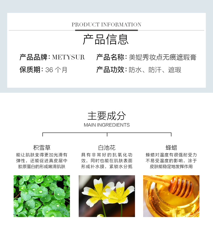 Metysur/美媞秀遮瑕膏遮盖脸部痘印痘痘雀斑点黑眼圈遮暇液盘笔