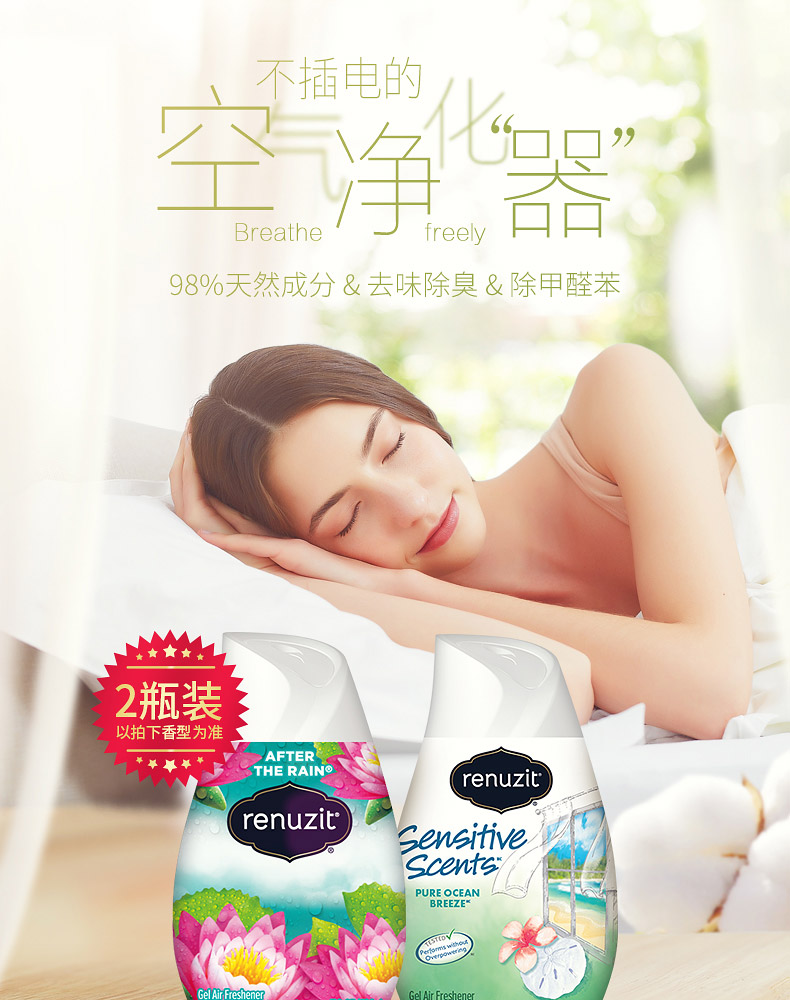 【美国进口】蕊风技术吸附并消灭异味,全面净化空气,专业检测有效去除甲醛和苯,98%天然成分,不伤害宠物嗅觉,婴幼儿也适用,添加天然高级精油,可以安神,松弛精神【送芳香珠,赠运费险】
