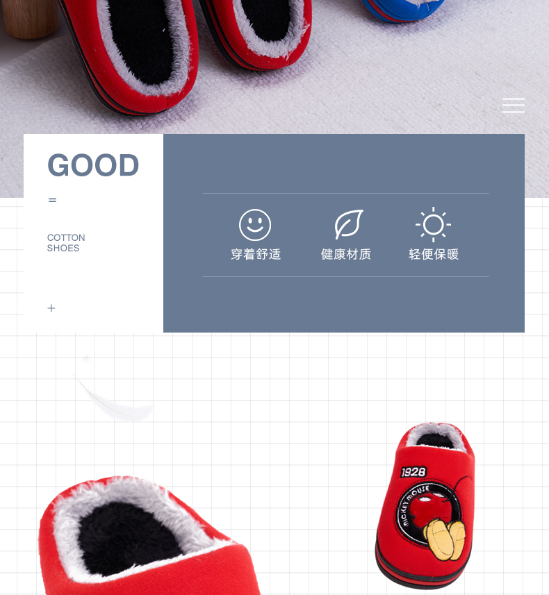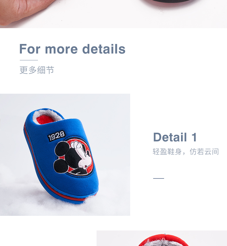 趣味立体可爱米老鼠刺绣图案,优质北极绒内里,聚热锁温,柔软鞋身让宝贝行走不累脚,棉花糖般质感,鞋底防水防滑,摩擦力强,助力童年每一步!【赠运费险】