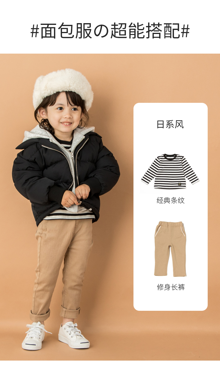 【日本TOP童装】秋冬款面包羽绒服,潮流时尚!90%优质白鸭绒,轻便保暖,清洁度高于国标1.2倍!高密度面料拒绝跑绒,锁紧温暖!陪宝宝度过凌冽寒冬~【赠运费险】