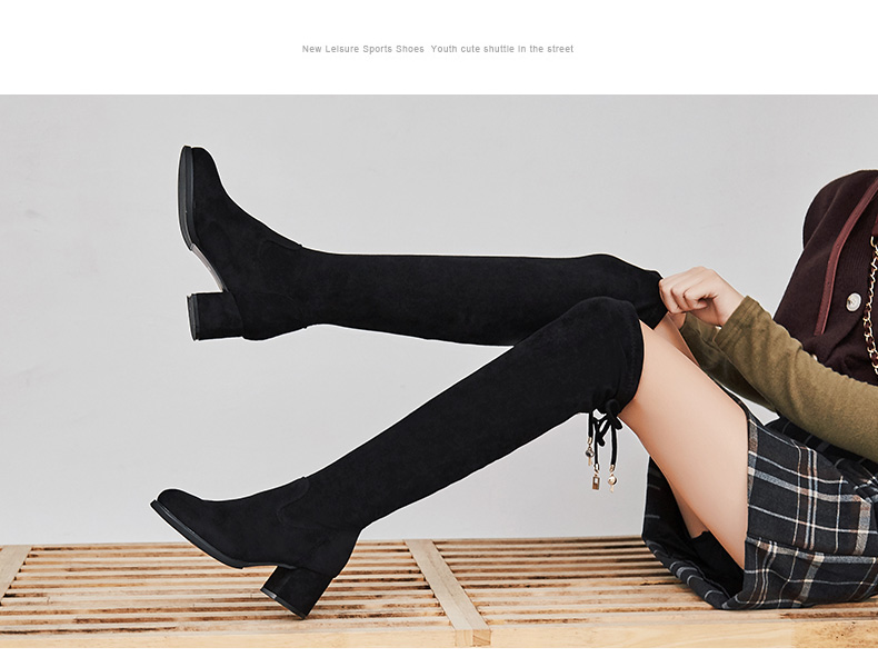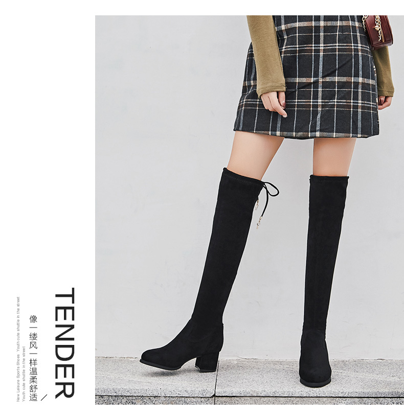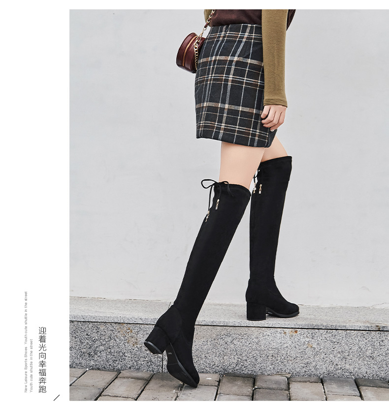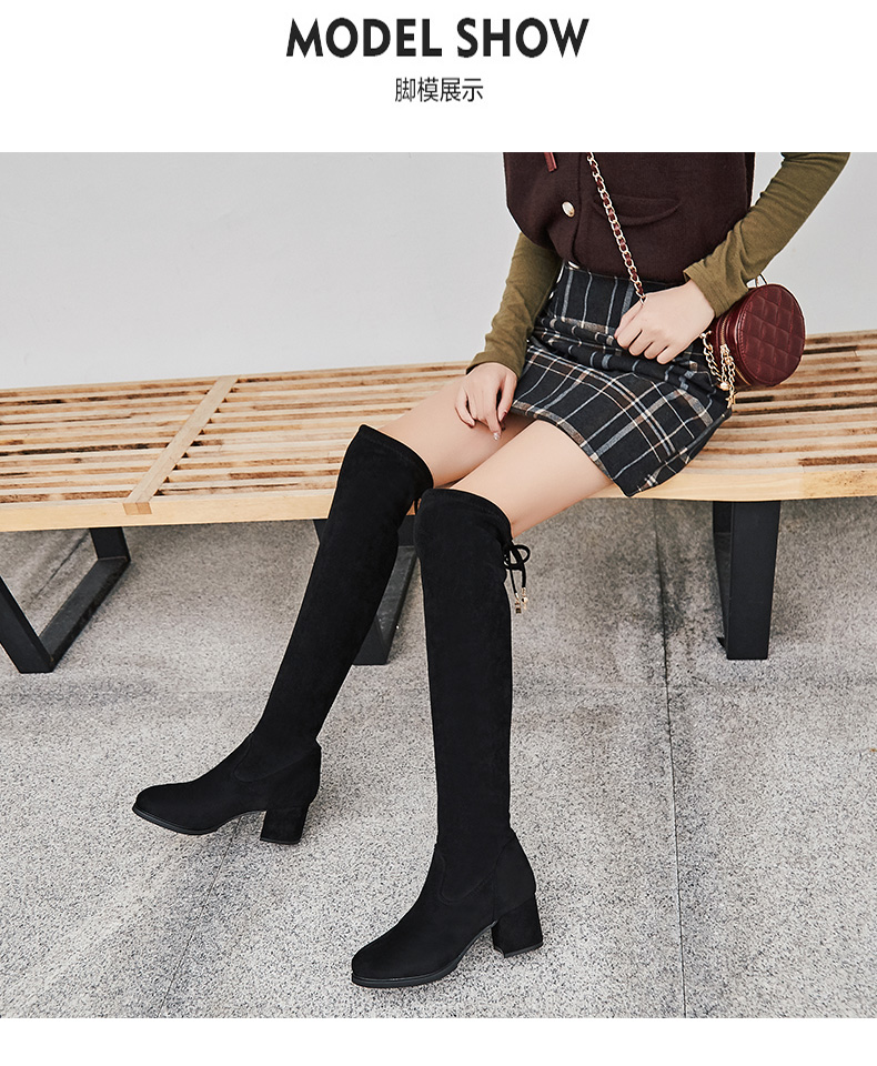 【线下超级大牌达芙妮】简约优雅的长筒弹力过膝靴,高颜值粗跟时尚百搭款,时尚保暖,超级显瘦,完美彰显腿长,腿廋,过膝靴时尚凹造型的必备单品!!!【赠运费险】