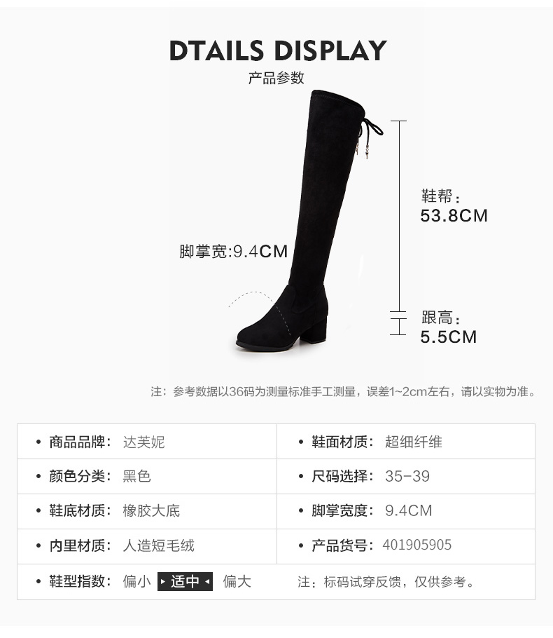 Daphne/达芙妮长靴女过膝靴子2019秋冬新款高筒靴粗跟加绒弹力靴