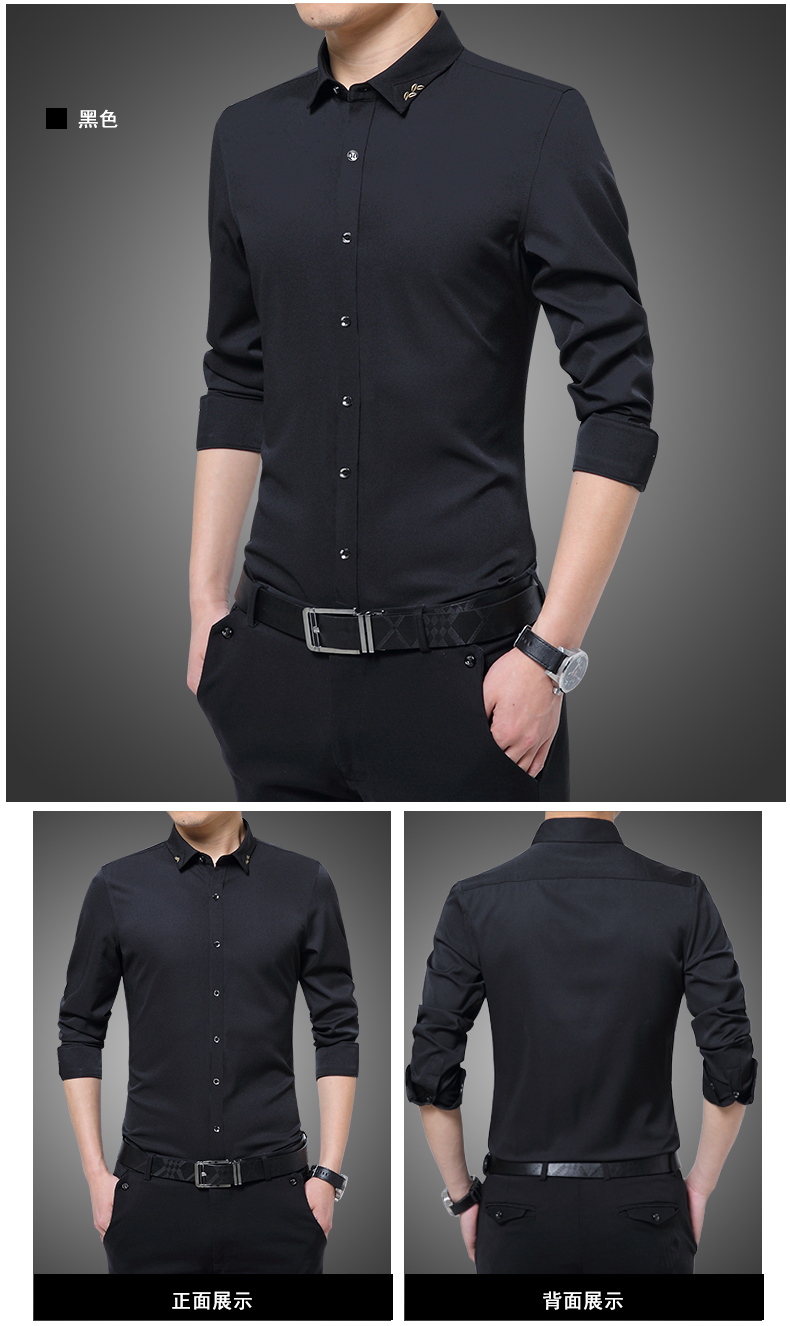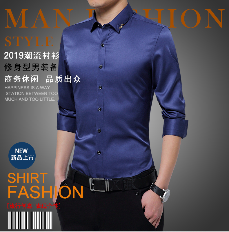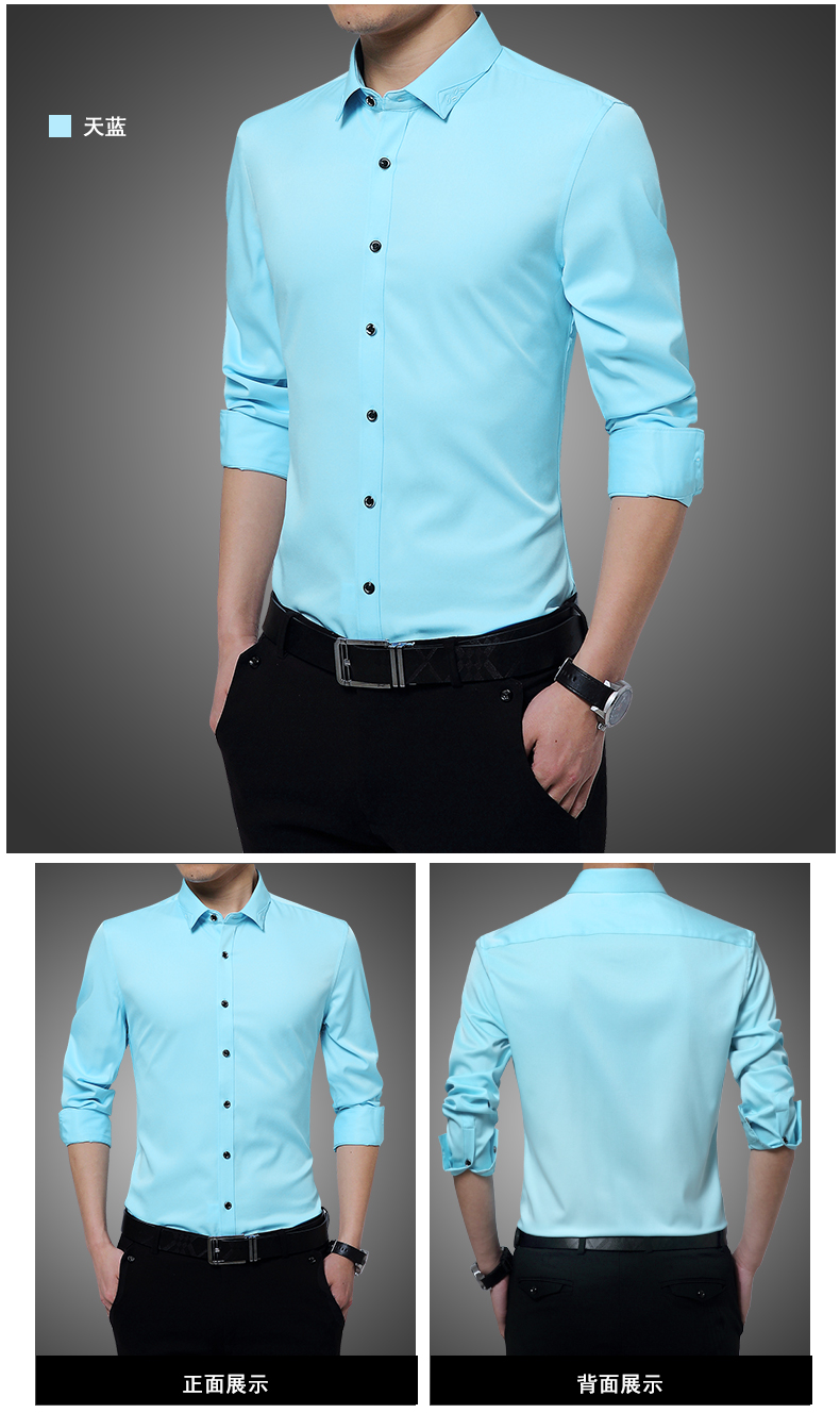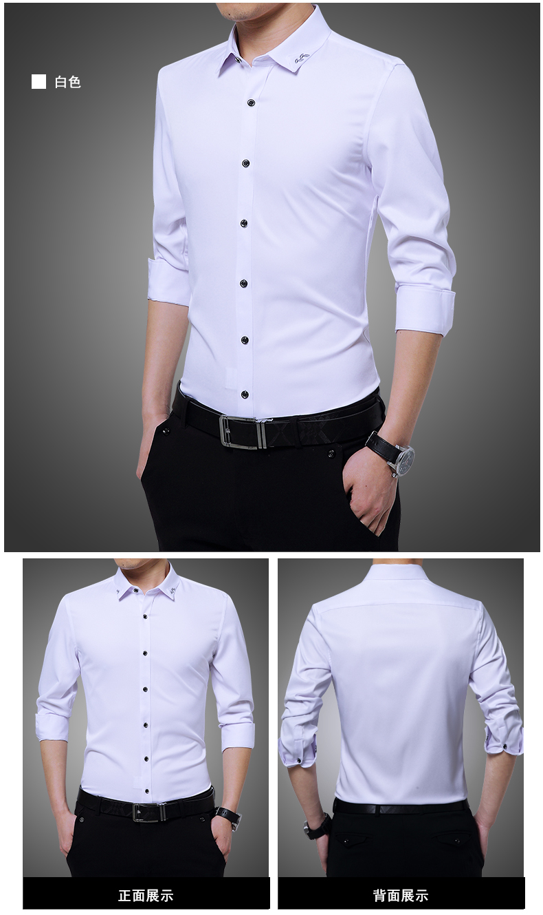 长袖衬衫男士春秋薄款韩版修身商务休闲白色寸衫青年免烫衬衣潮流