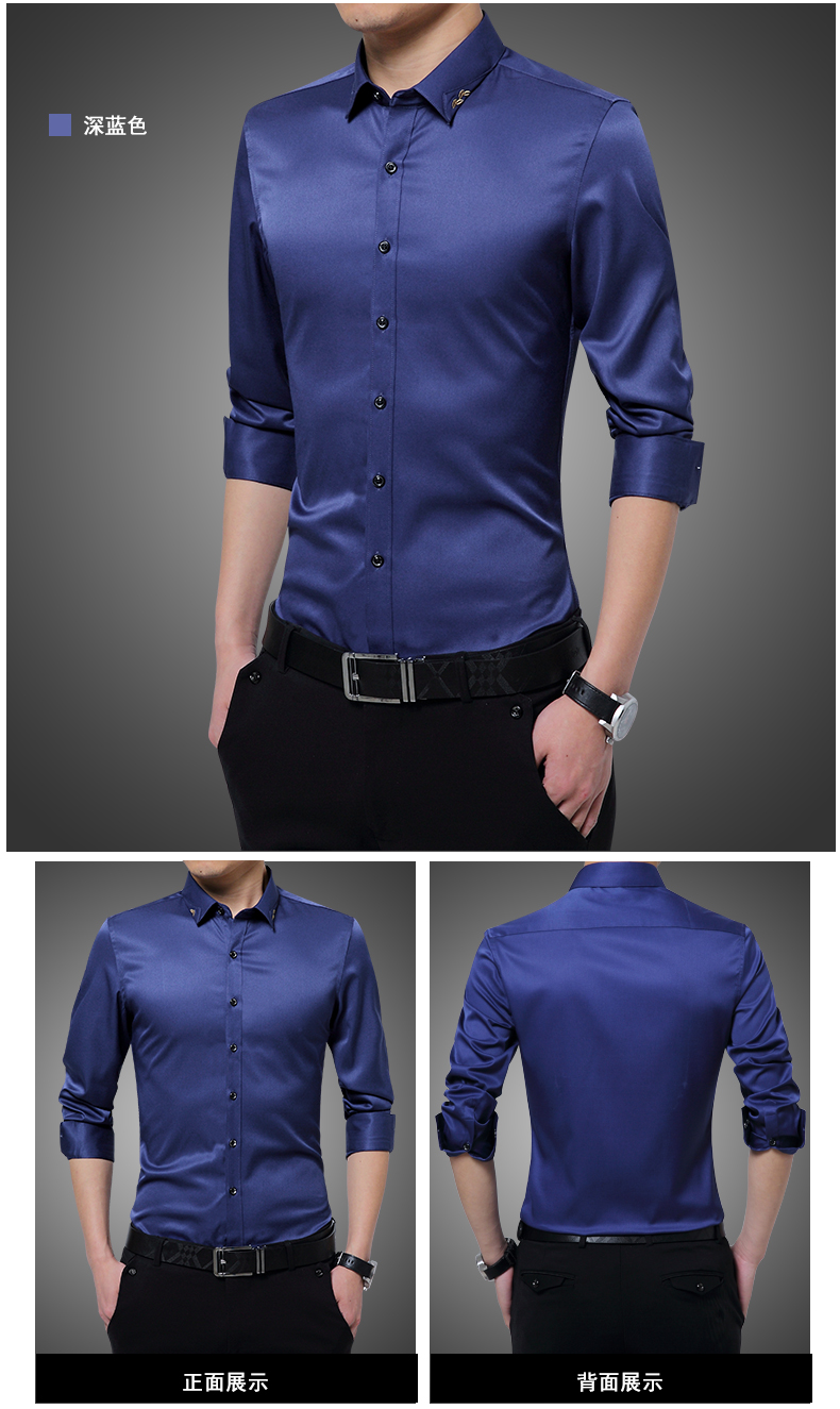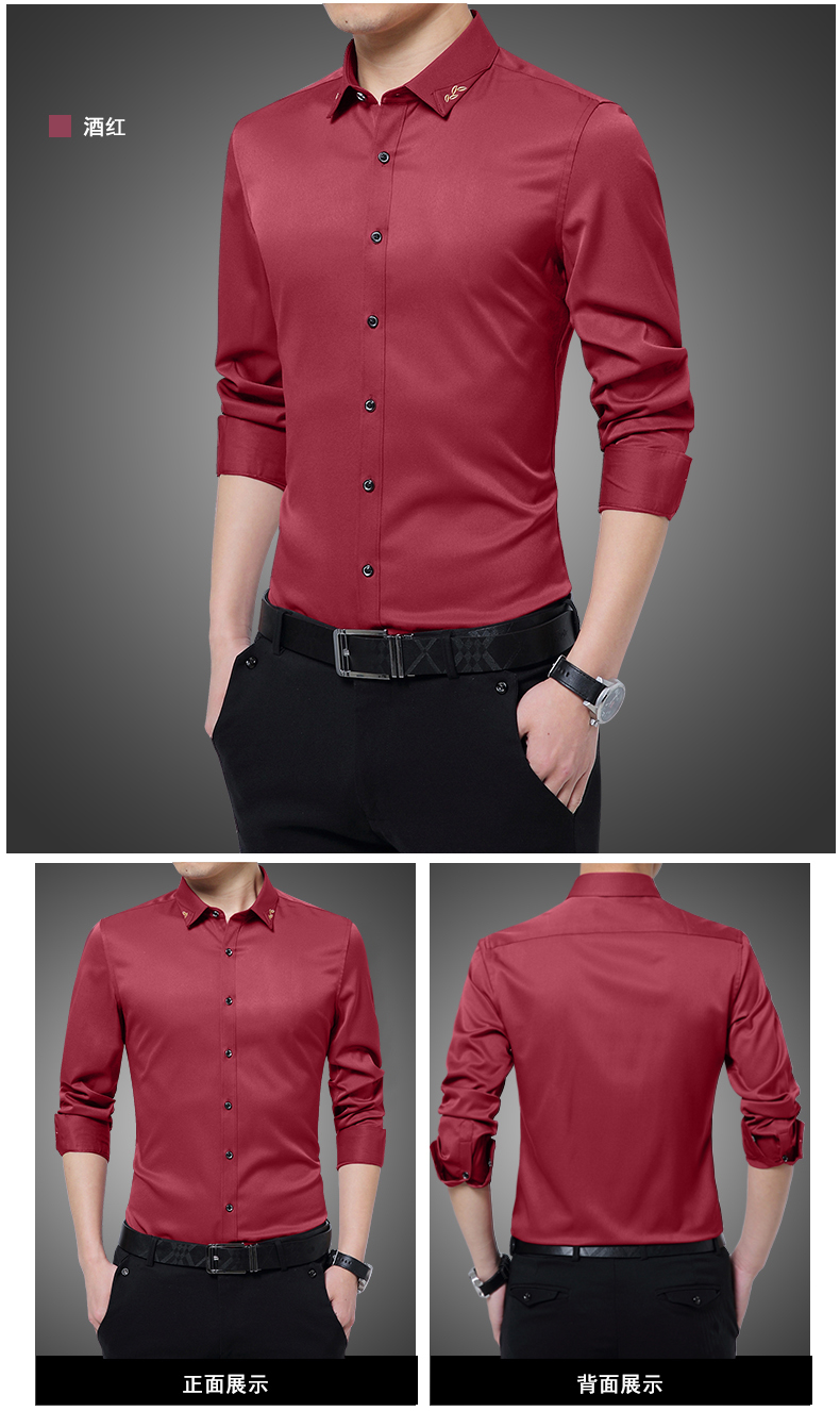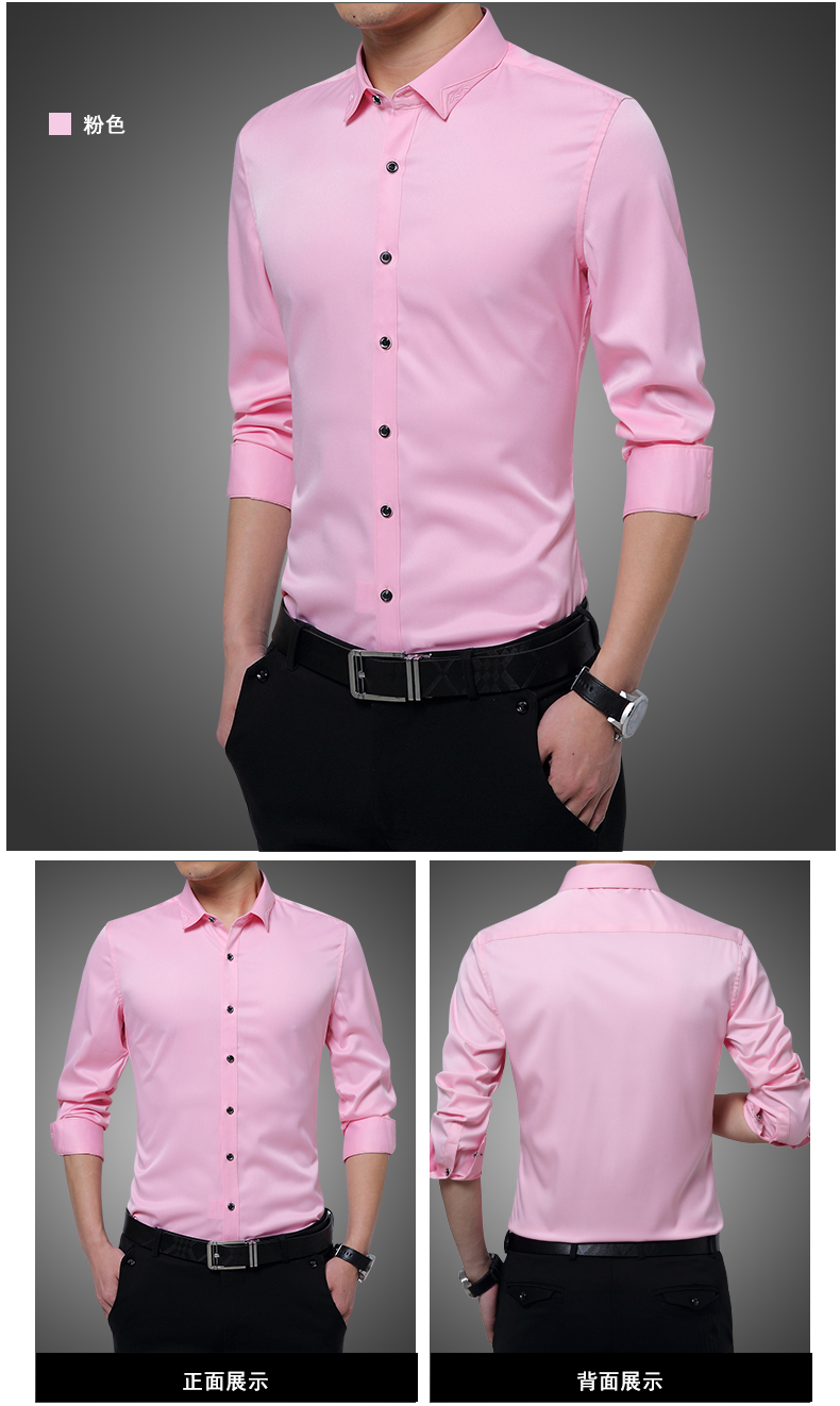 长袖衬衫男士春秋薄款韩版修身商务休闲白色寸衫青年免烫衬衣潮流