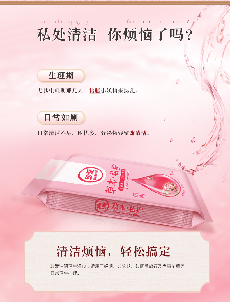 珍爱湿巾洁阴女性湿巾私处杀菌抑菌房事男女卫生湿巾女湿纸巾家用
