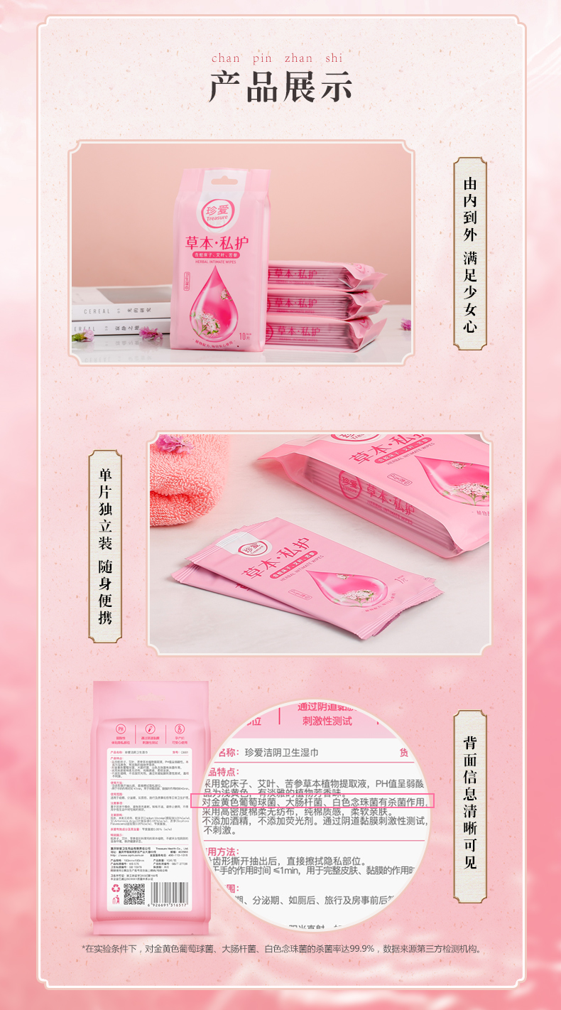 【第二件半价】珍爱洁阴湿巾,60片单片装/独立装,私处护理,清洁杀菌,草本提取液,不添加酒精,独立单片更卫生~~