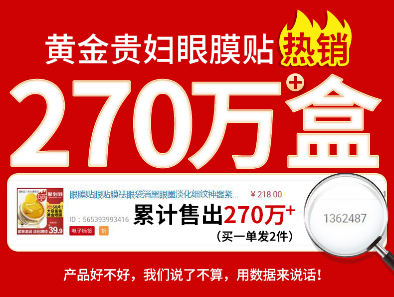 【超值60片*2瓶+送2片面膜】累计16万+4.8好评!黄金贵妇眼膜贴,满满的胶原能量,深层补水保湿,淡化黑眼圈,深入修护眼部问题,告别熊猫眼,一贴多用,轻轻一敷,还你焕彩美眸【赠运费险】