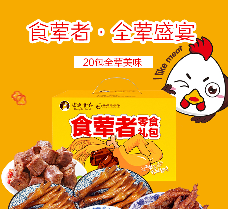 宏达食品卤味零食大礼包麻辣鸭脖五香鸭掌虎皮鸡爪卤肉类熟食礼盒