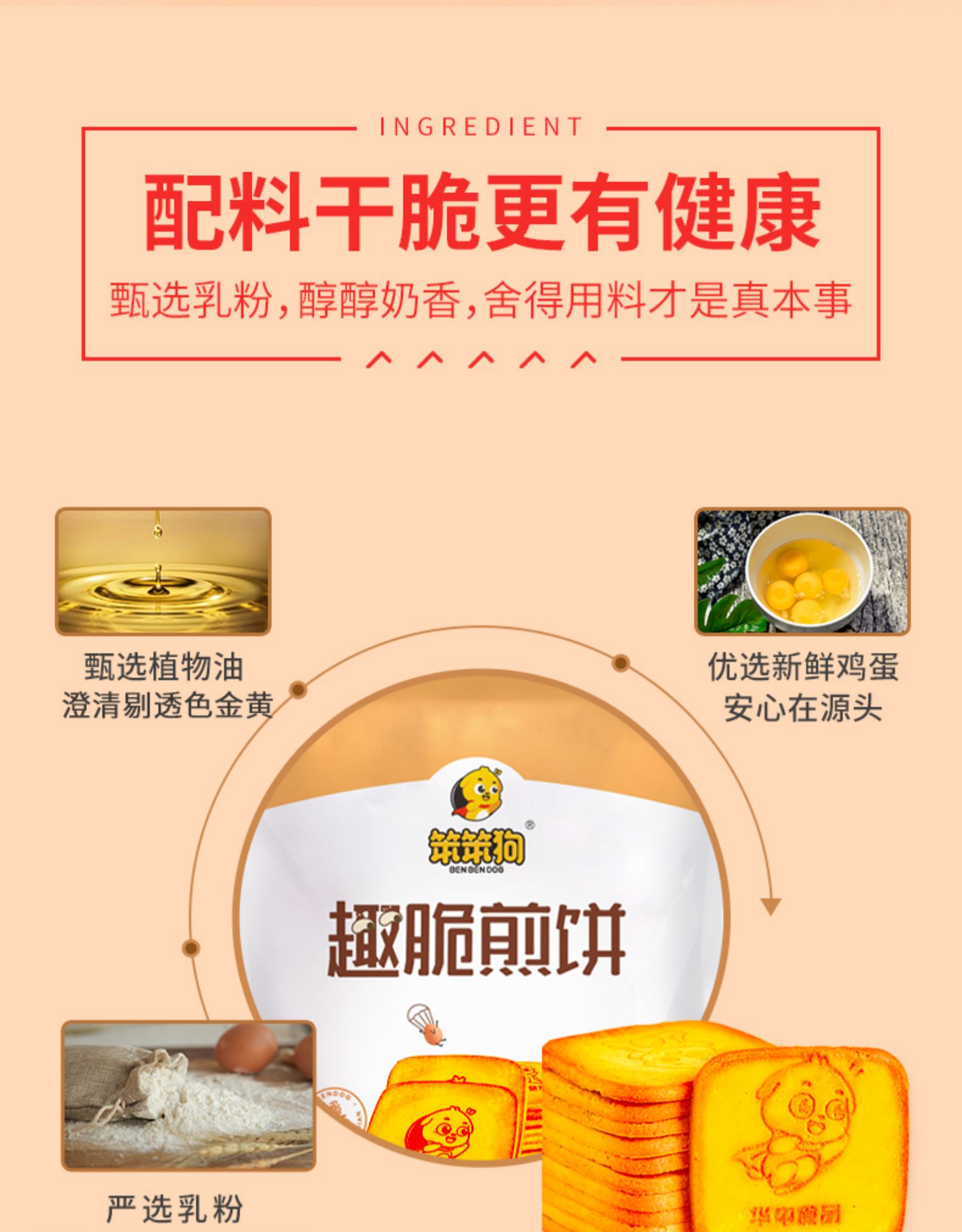 笨笨狗食品印花煎饼零食大礼包 吉祥煎饼鸡蛋薄脆糕点饼干518g