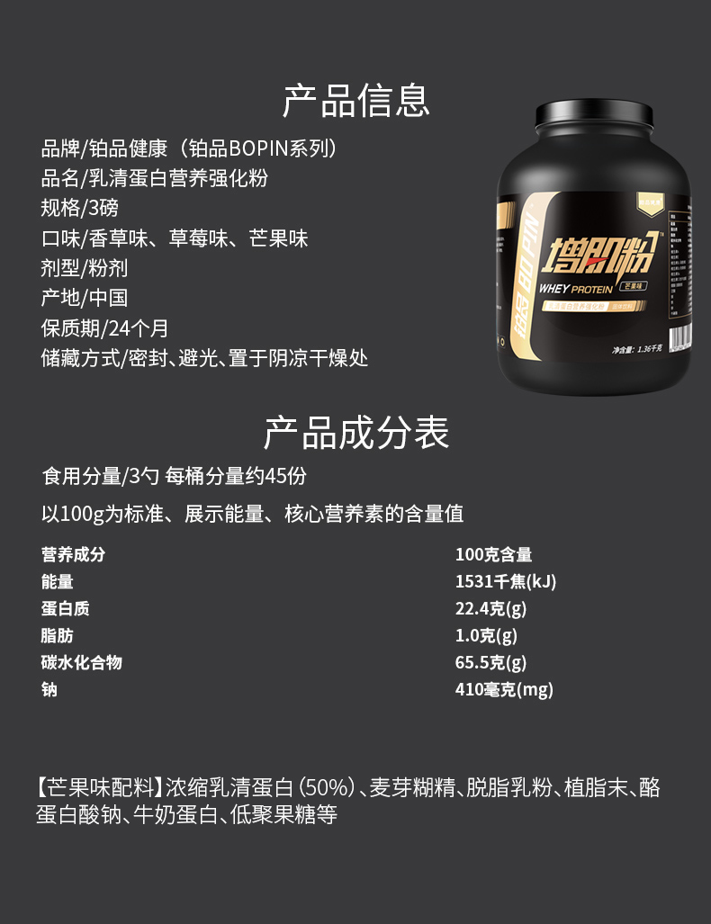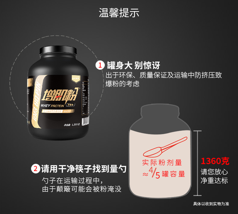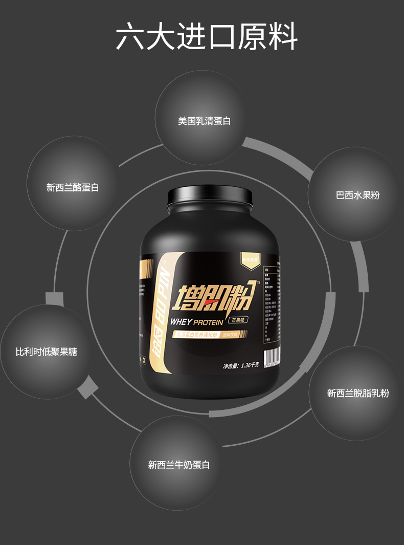 [买2发5]增肌粉乳清蛋白质粉瘦人增重营养健肌男女健身补剂进口