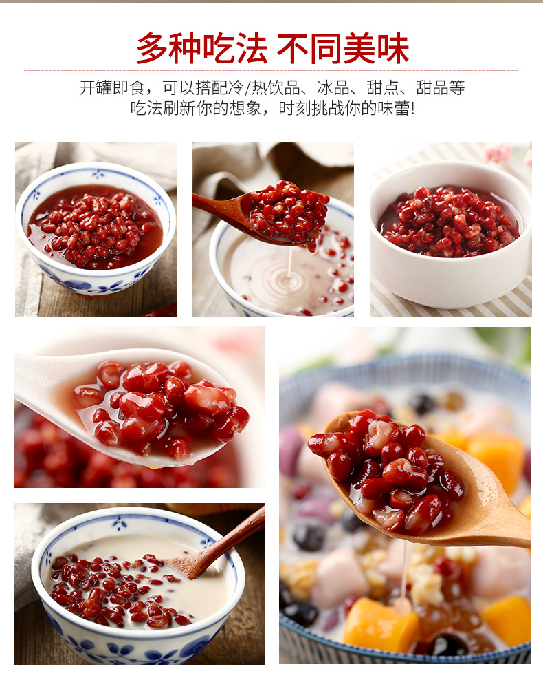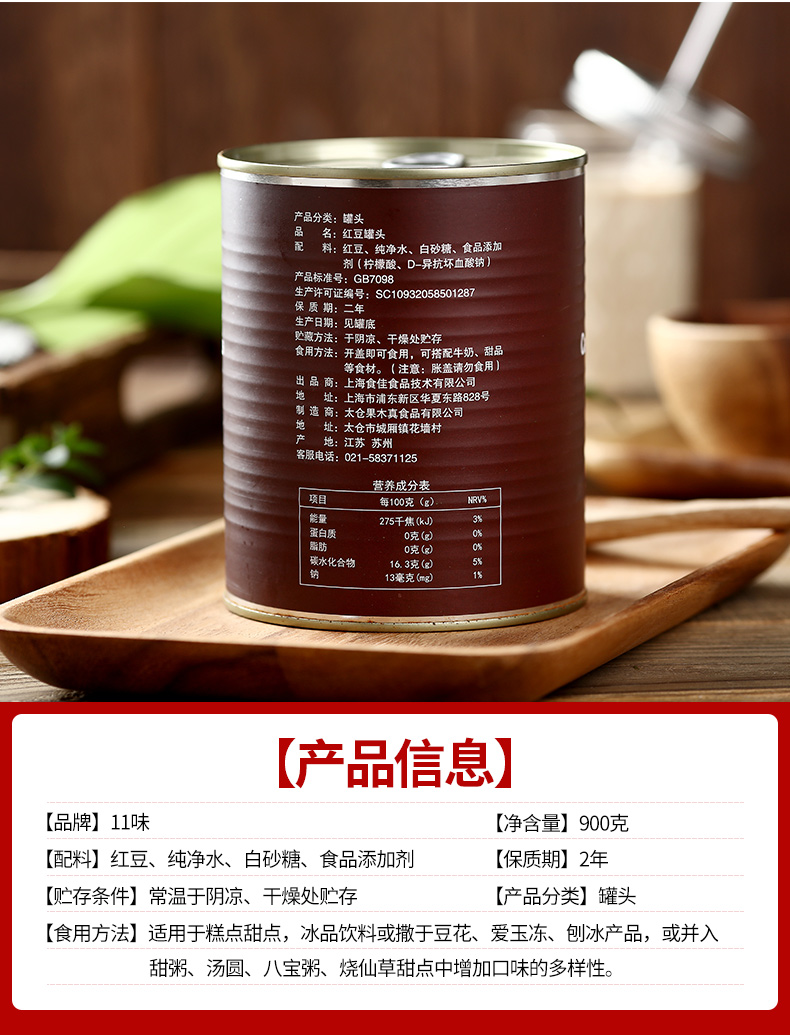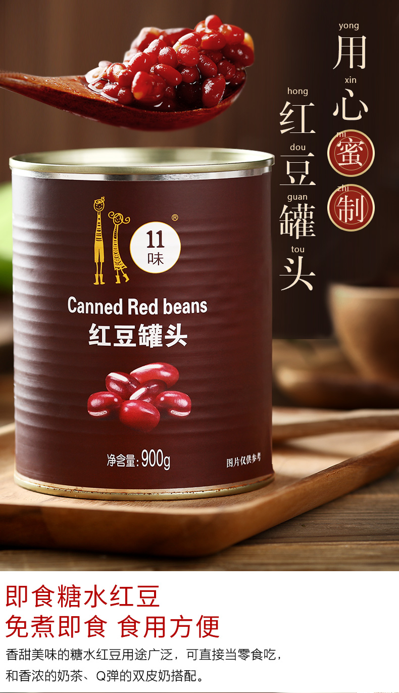 11味糖水红豆罐头900g开罐即食糖纳豆蜜豆烧仙草奶茶甜品专用原料