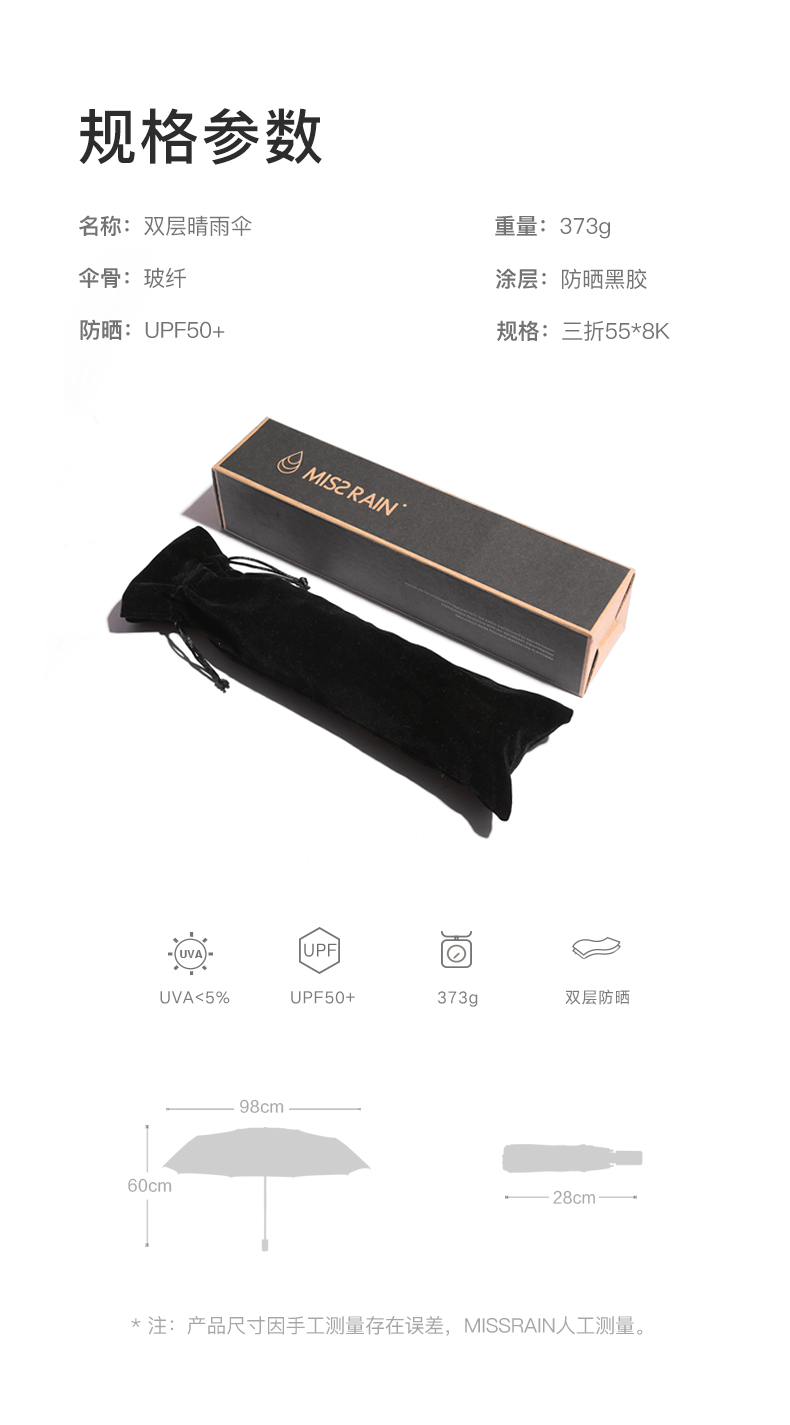MISSRAIN双层防晒太阳伞女晴雨两用折叠防晒黑胶防紫外线遮阳伞