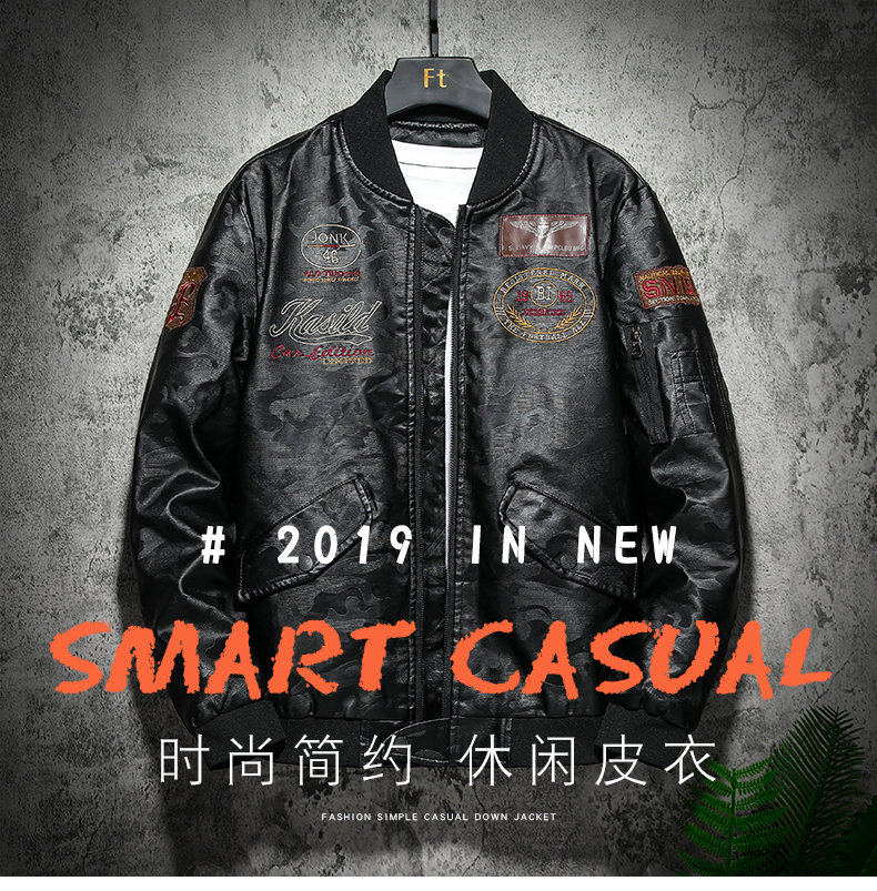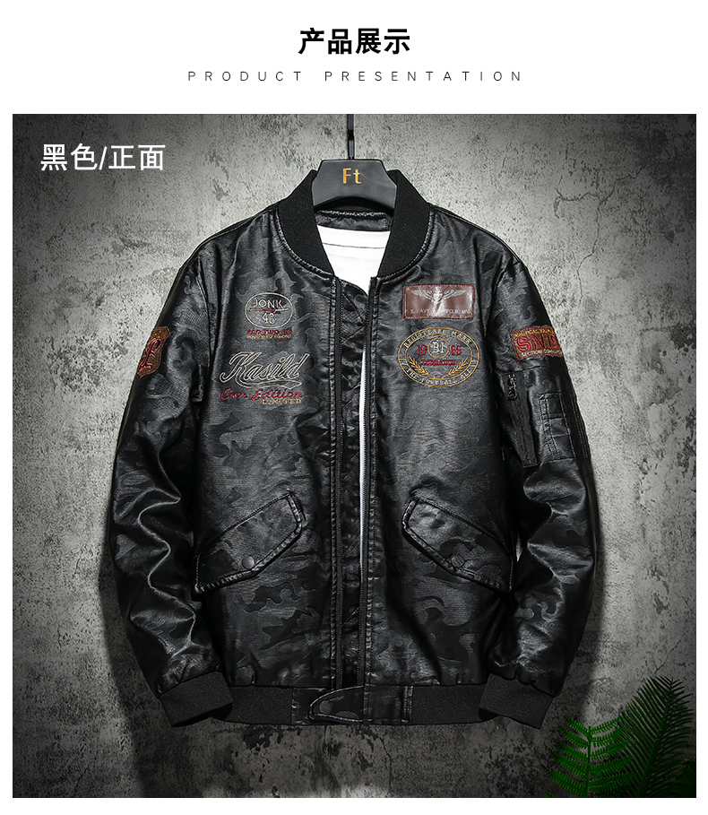 2019男士新款皮衣外套男韩版修身潮流帅气秋冬季迷彩飞行服皮夹克