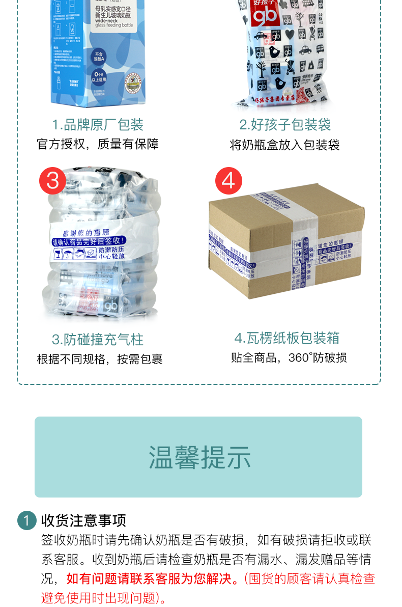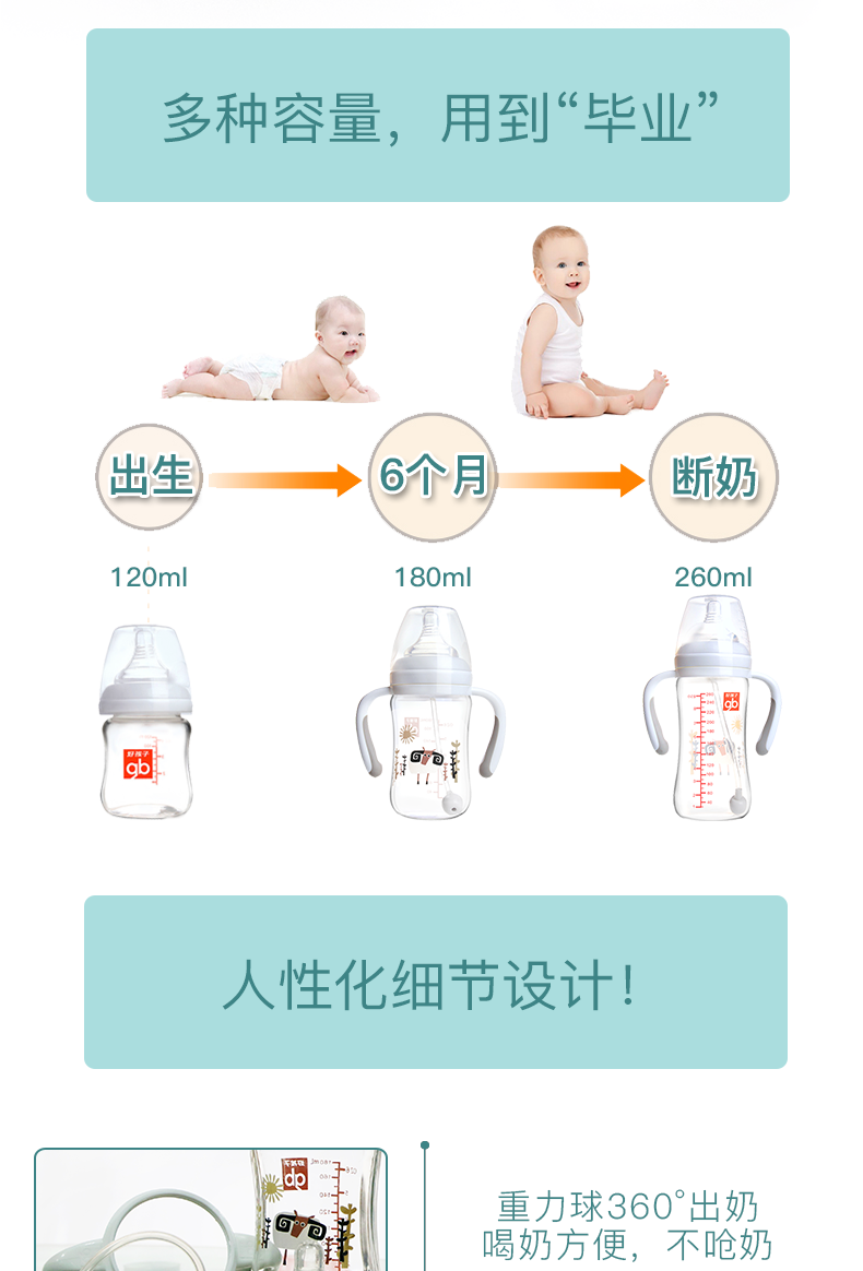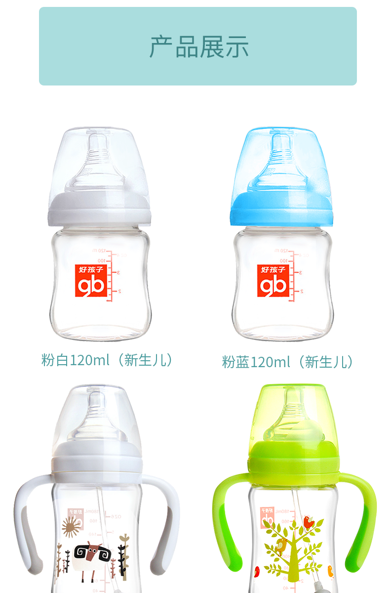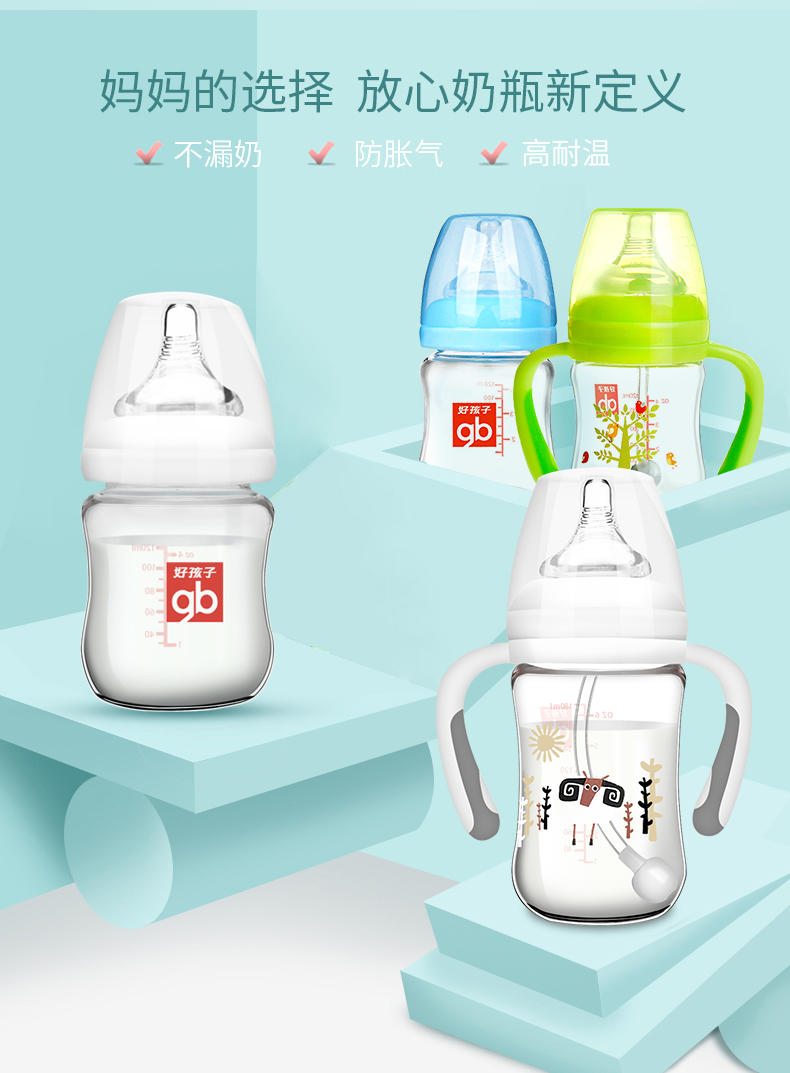 【超值】好孩子婴儿玻璃奶瓶,防胀气宽口径,仿母乳奶嘴,抗摔设计,高硼硅玻璃,耐温600度,清洗方便,【实体店要100元左右,现在只要30元,30天之内不管任何情况下破损都包赔,买就送4件套哦】