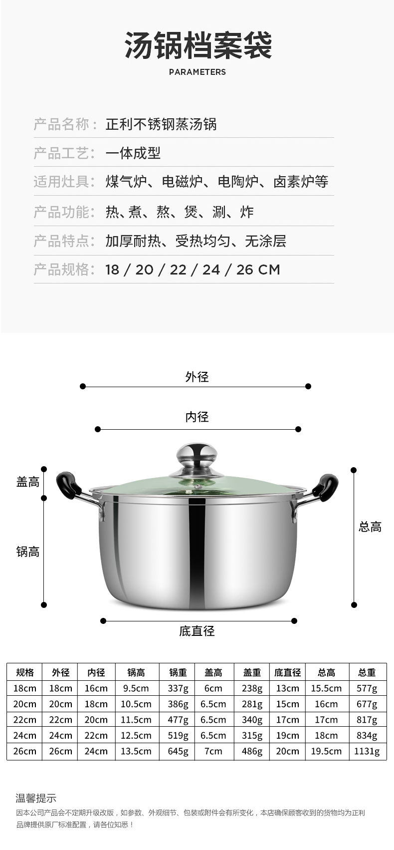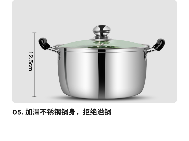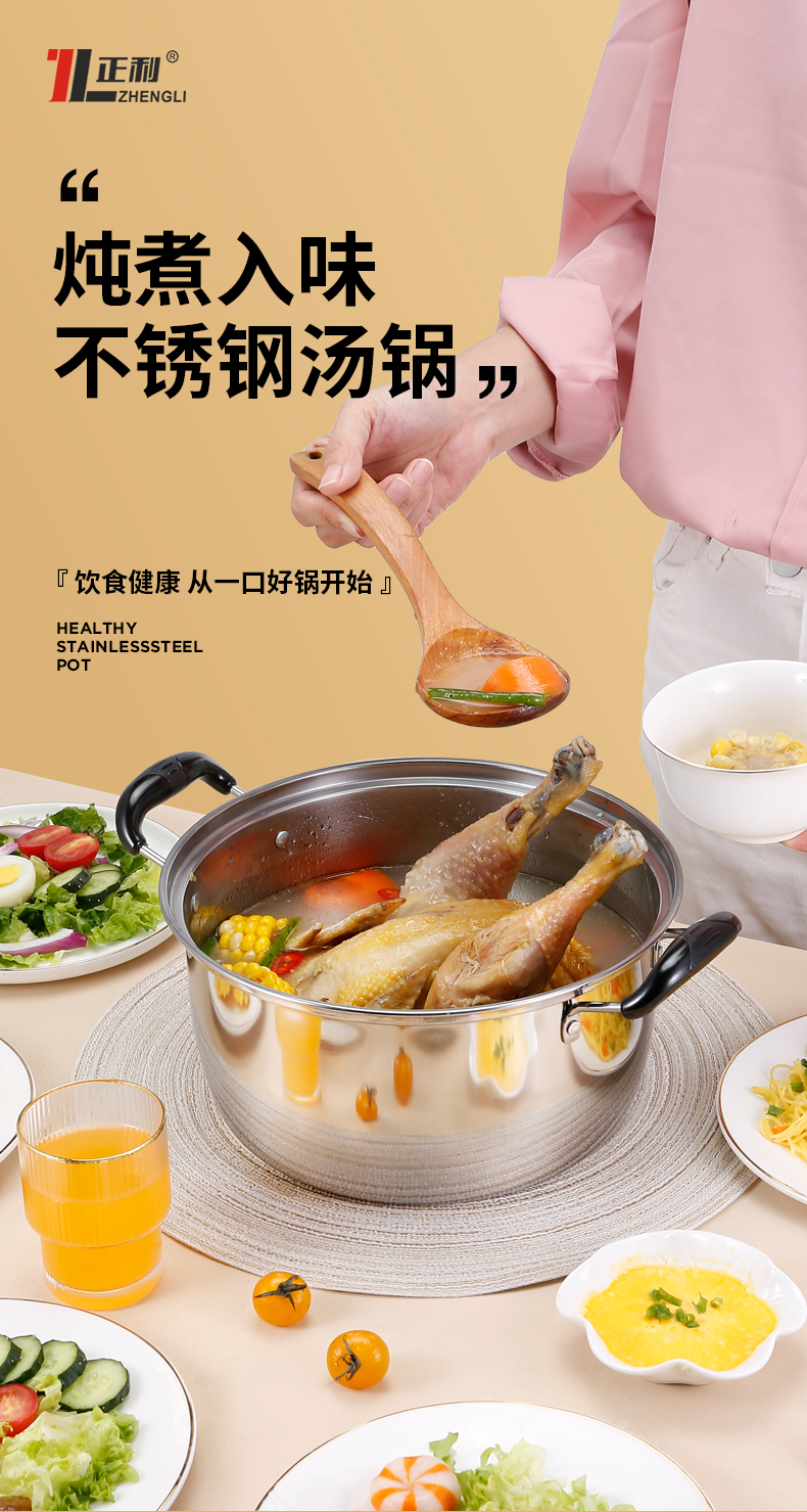 正利不锈钢汤锅加厚双柄煮面锅学生锅奶锅小锅家用蒸锅电磁炉通用