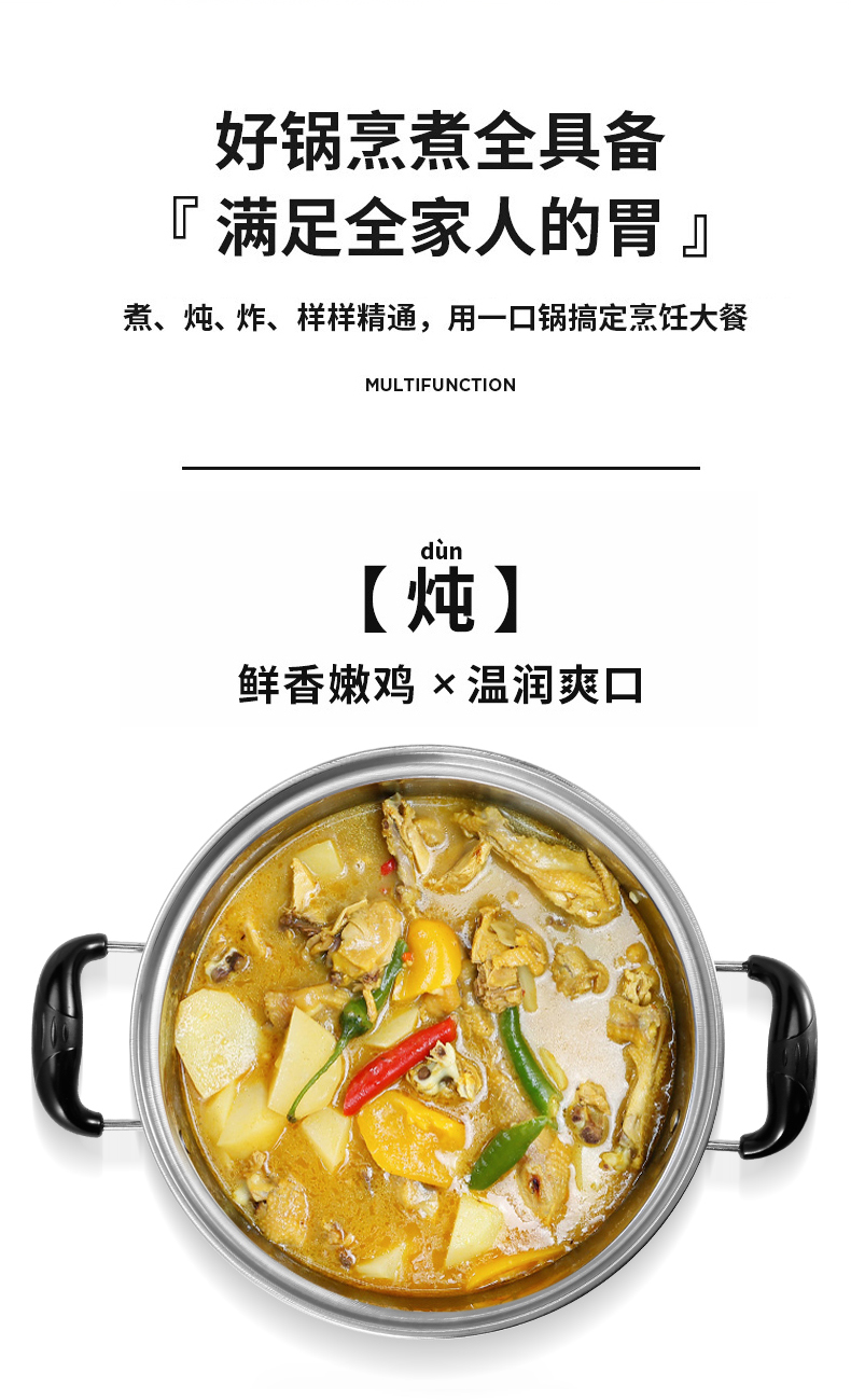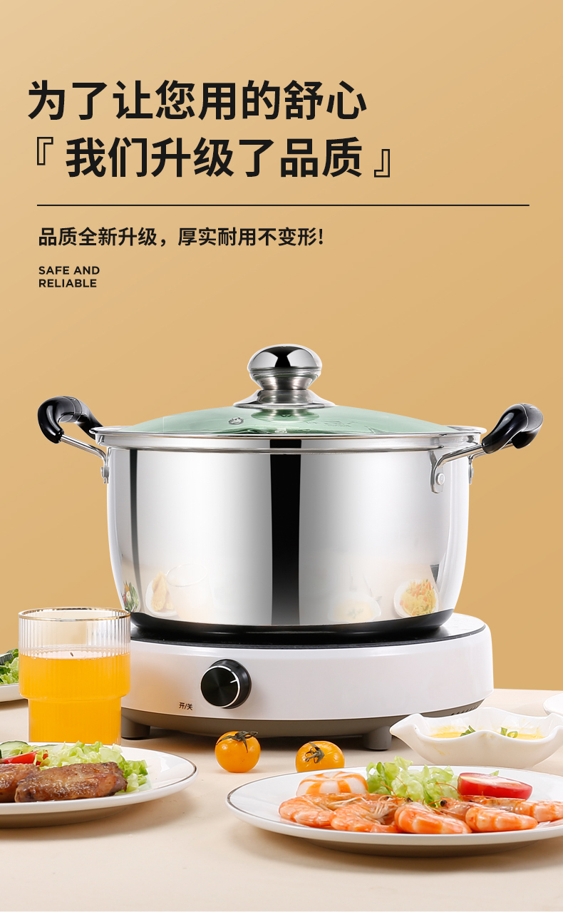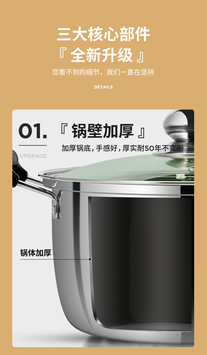 整锅400食品级不锈钢原材,1.2L无涂层加厚锅身,光亮如镜!G型锅盖,密封紧贴防溢;全钢手柄超大固定铆钉,聚能锅底导热均匀,不变形、易握不烫手,煤气炉/电磁炉通用~【赠运费险】