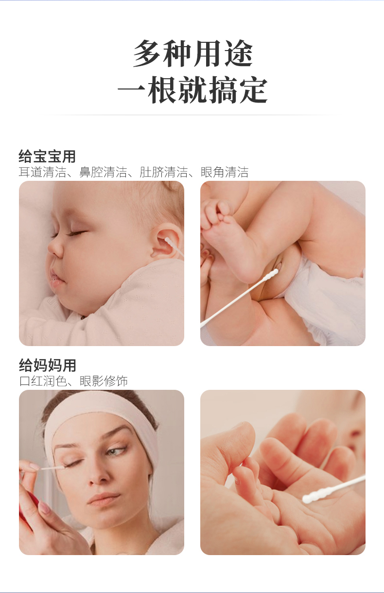 【600支】婴儿棉签宝宝专用新生儿掏耳婴幼儿耳鼻清洁儿童细棉棒