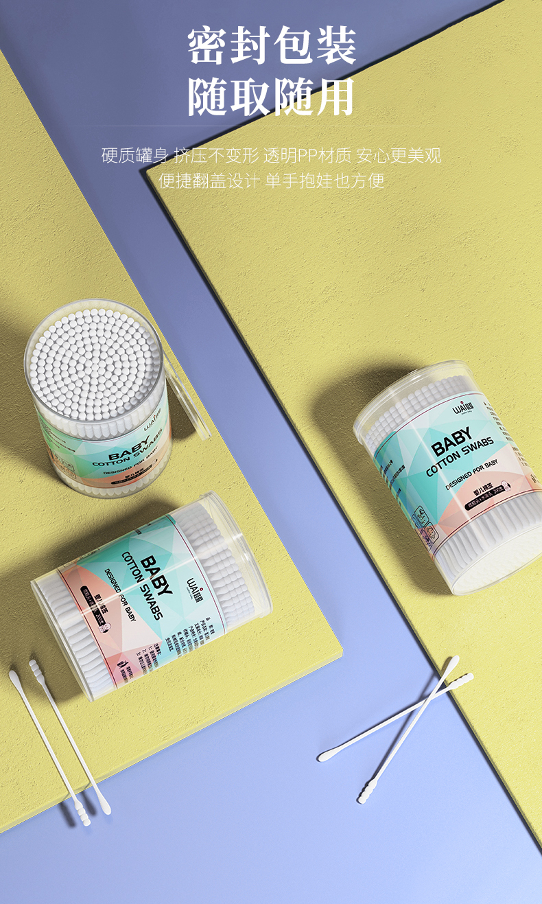 【三罐600支装】3万好评!!哇爱婴幼儿双头棉签,纸轴非木棒,螺旋型棉头+水滴型棉头,方便好用,不含荧光剂,不掉絮,不松脱,无异味,适合宝宝的棉签【赠运费险】