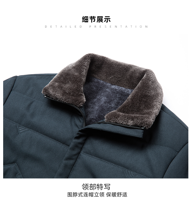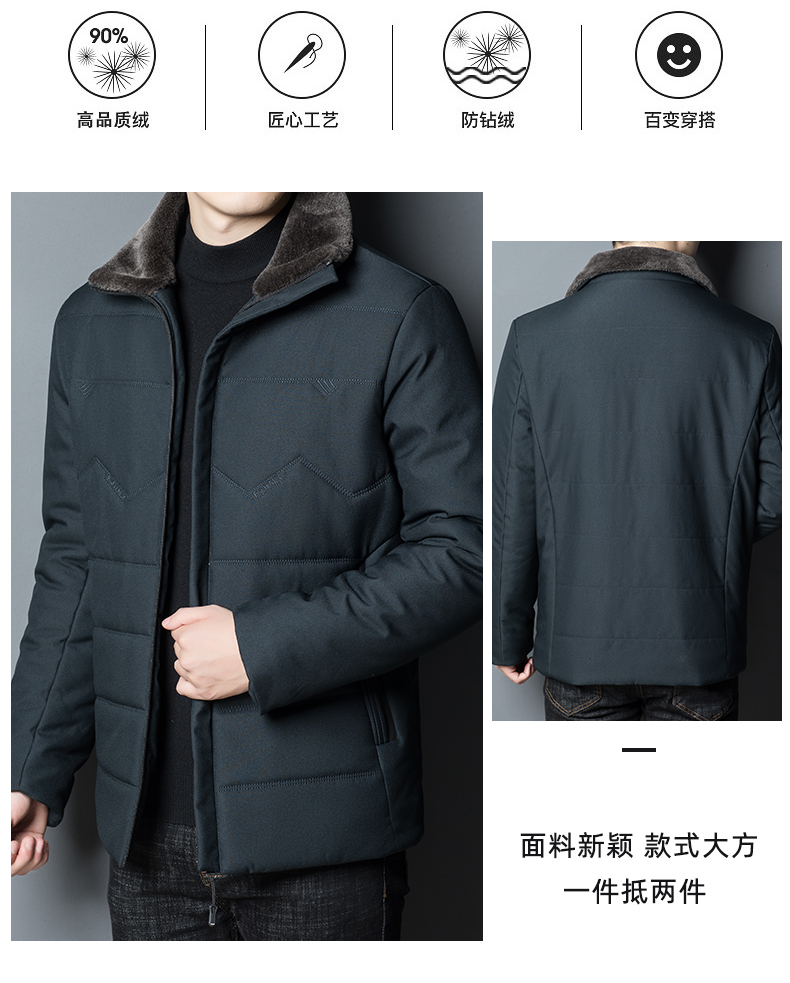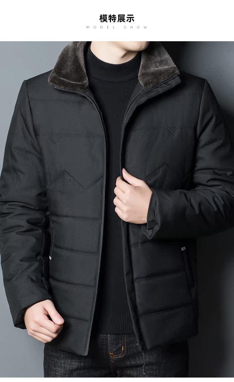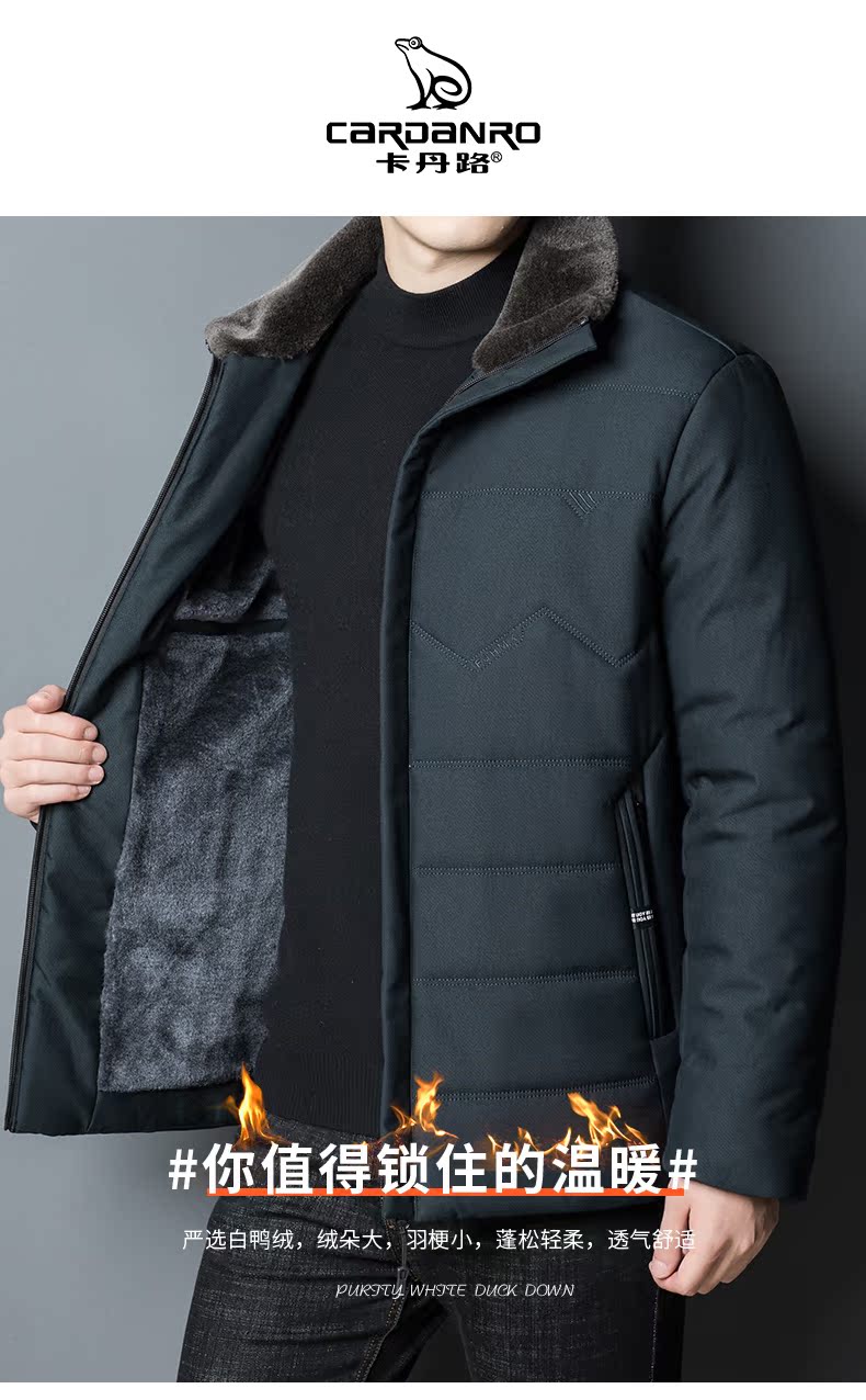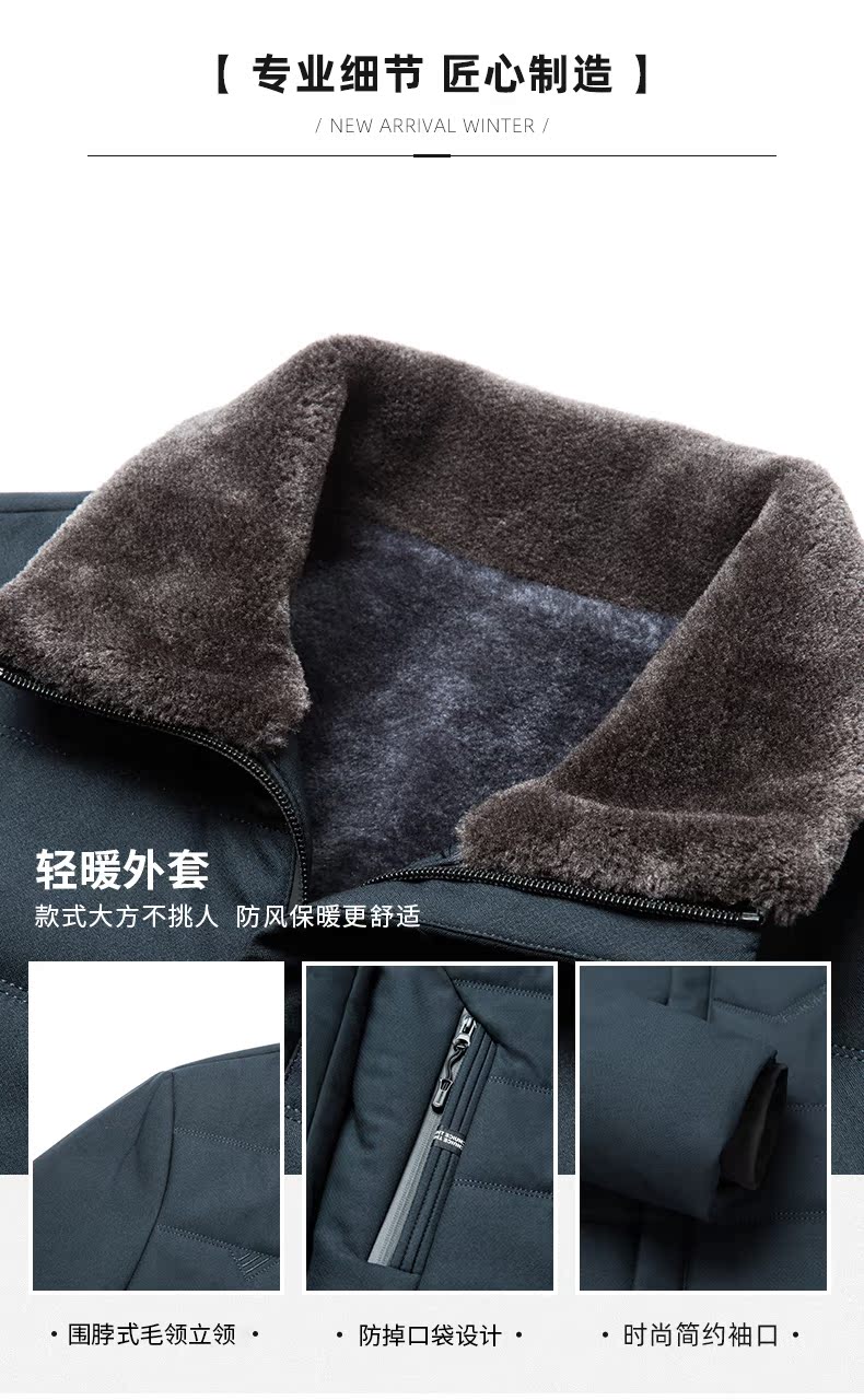 卡丹路中年男装冬装休闲纯色棉衣中老年男士冬季保暖加绒棉服外套