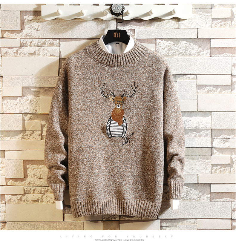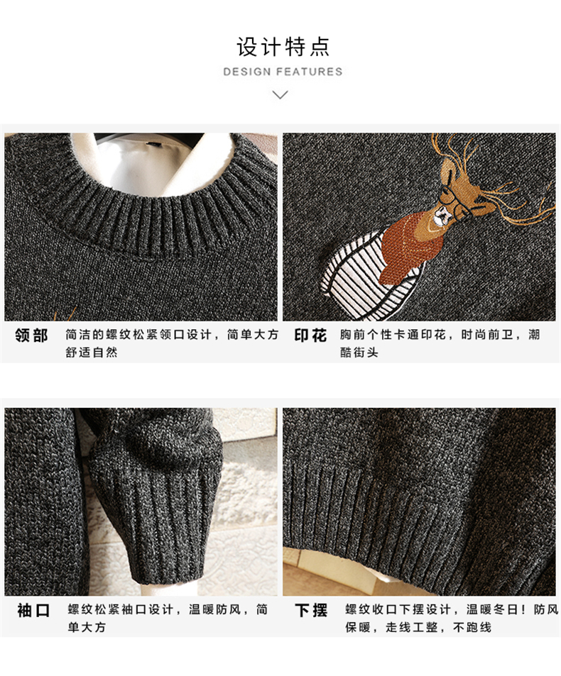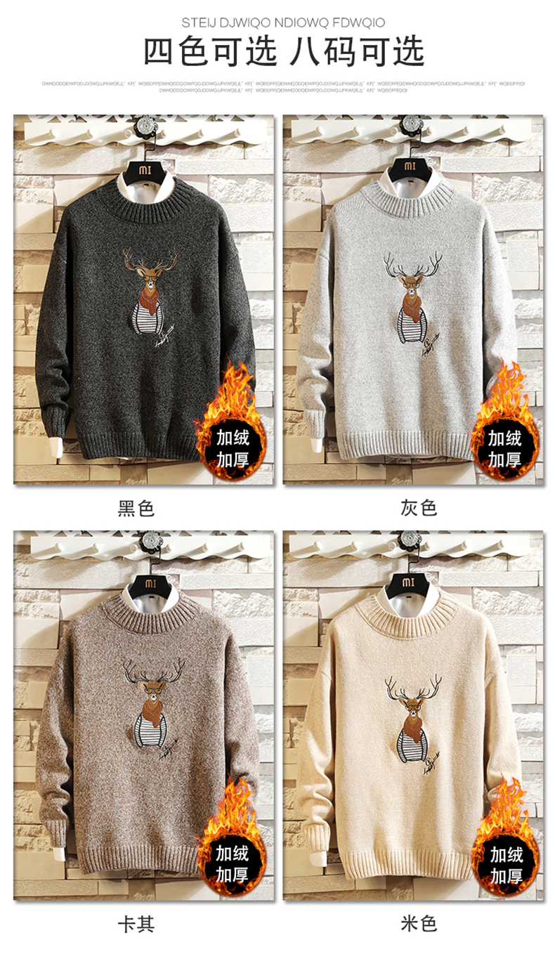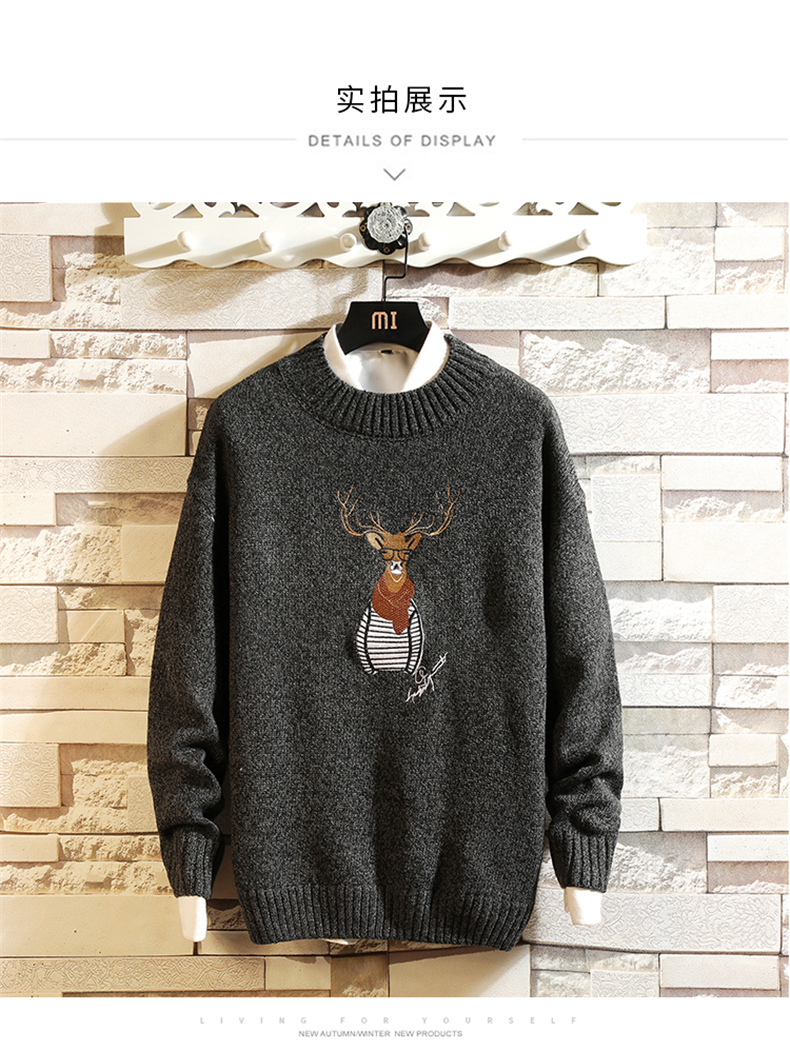刺绣毛衣男韩版潮流个性帅气学生厚款针织衫冬季加绒保暖线衣bf潮