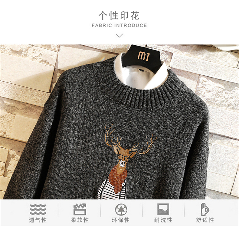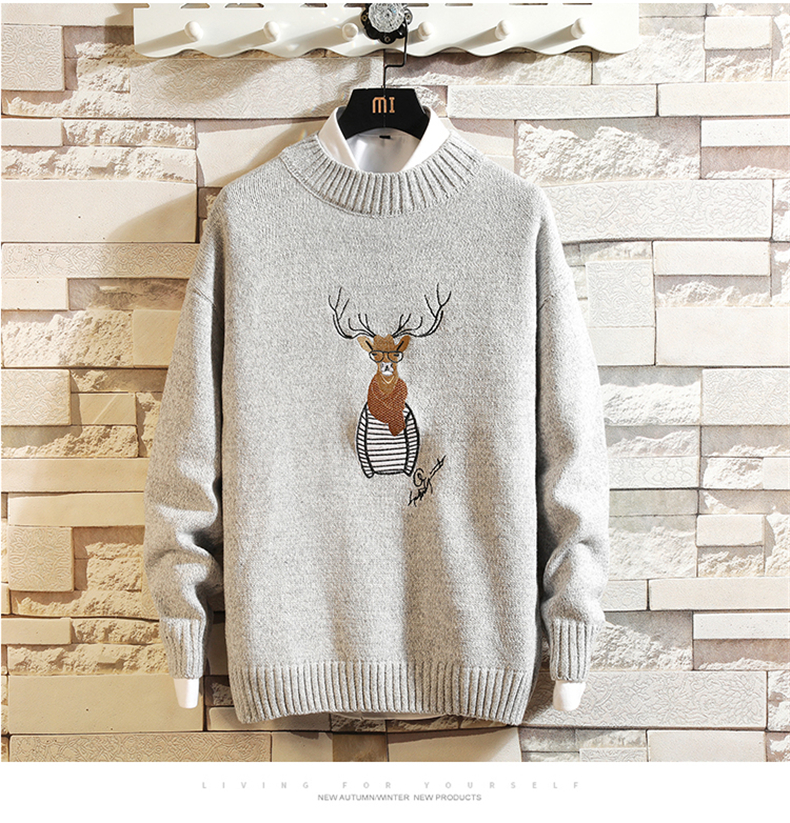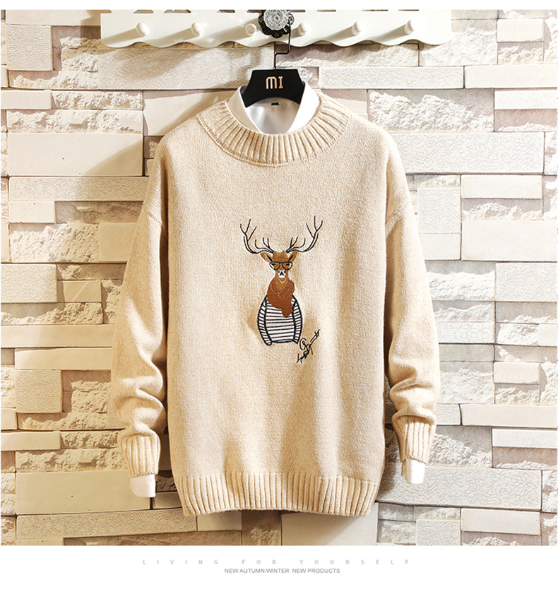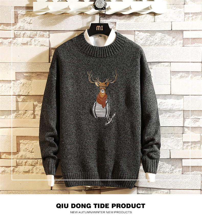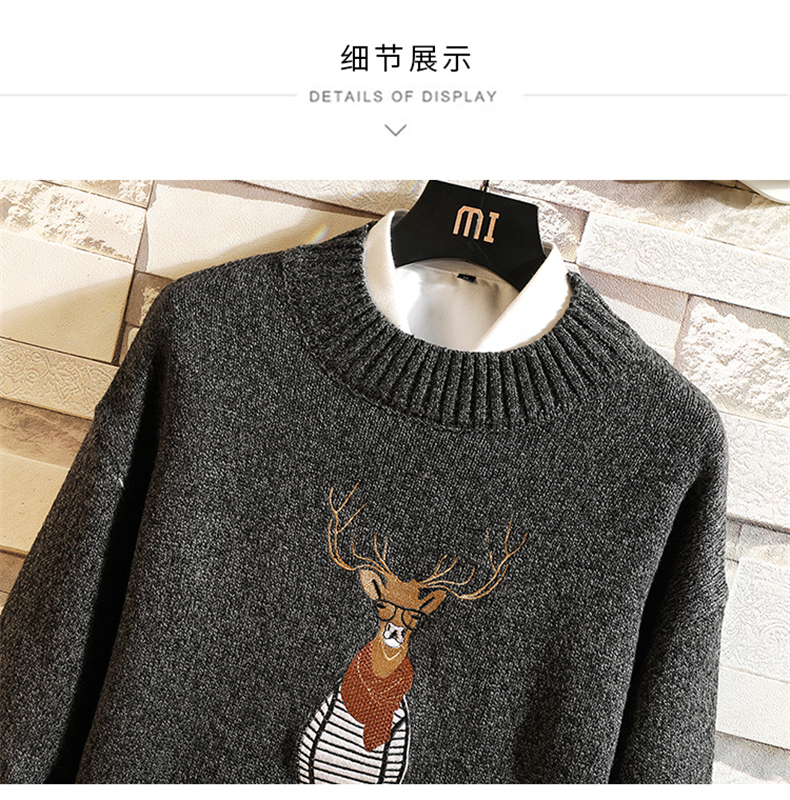 刺绣毛衣男韩版潮流个性帅气学生厚款针织衫冬季加绒保暖线衣bf潮