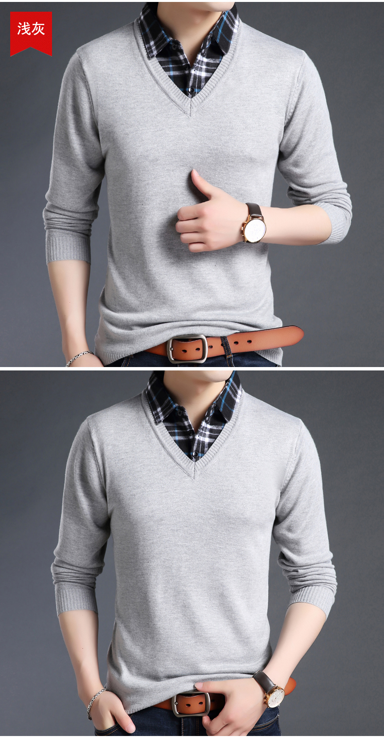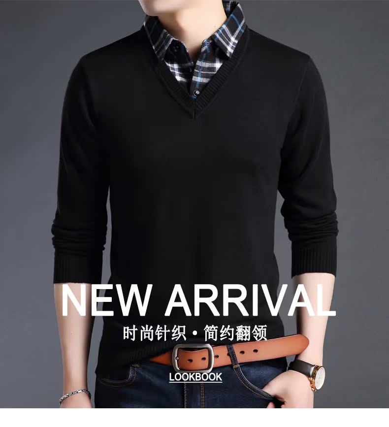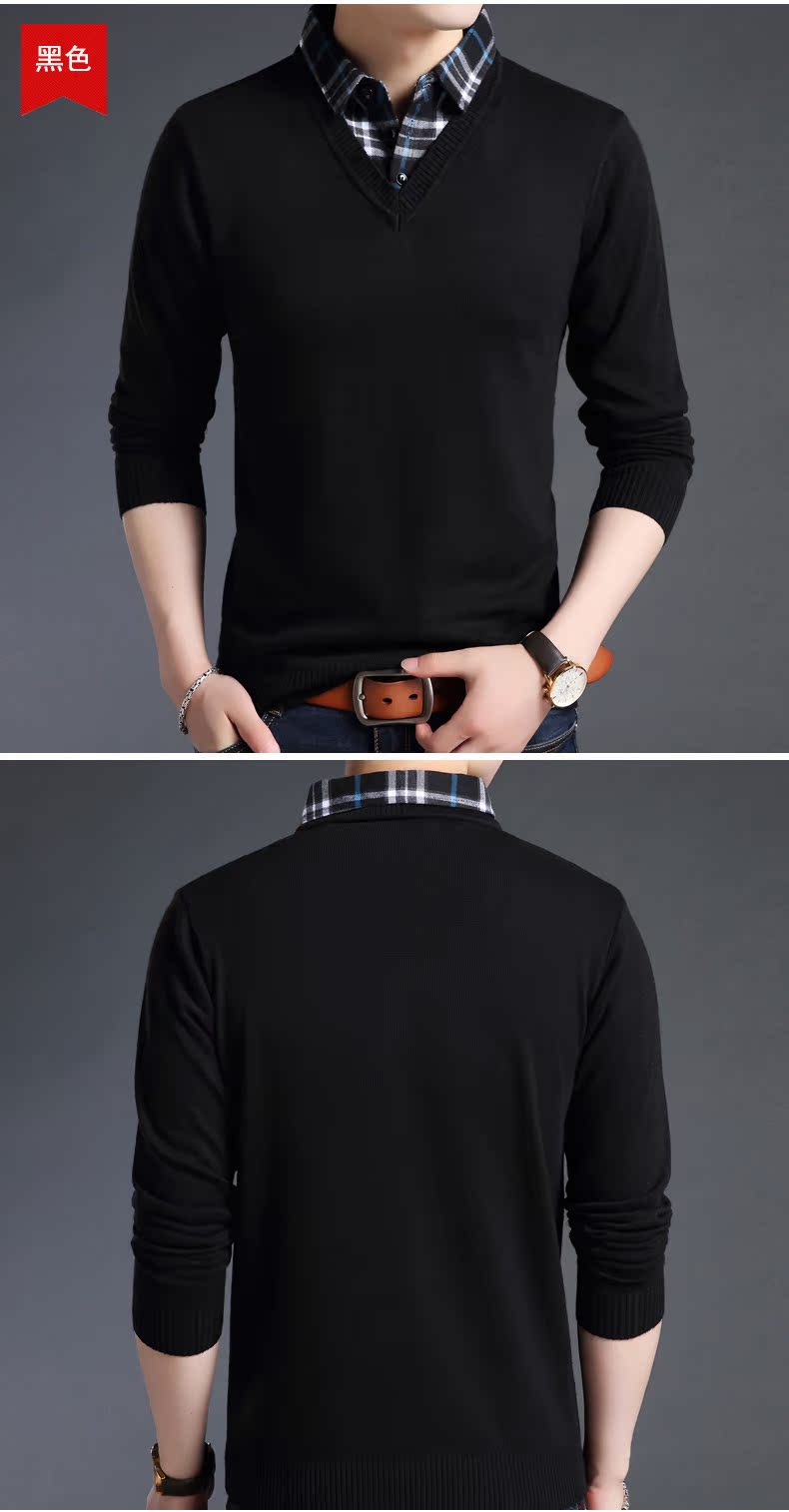 青年男士带领毛衣衬衣两件套假领羊毛衫秋冬款潮流2019上衣服潮流