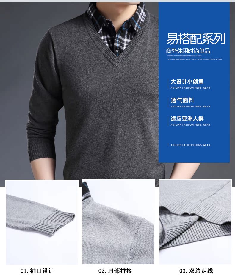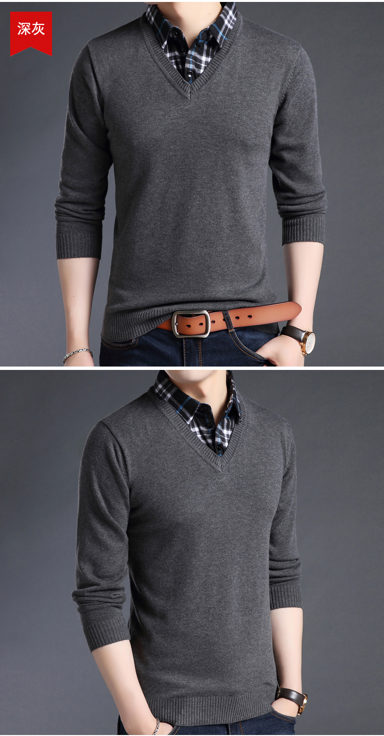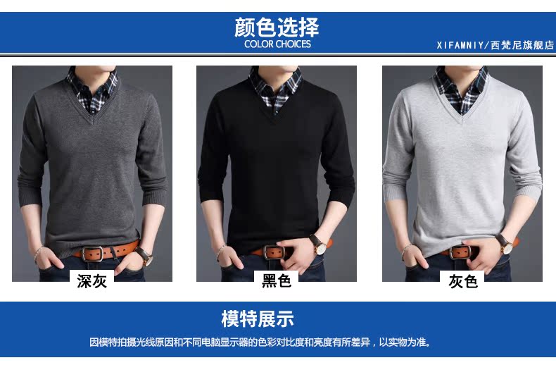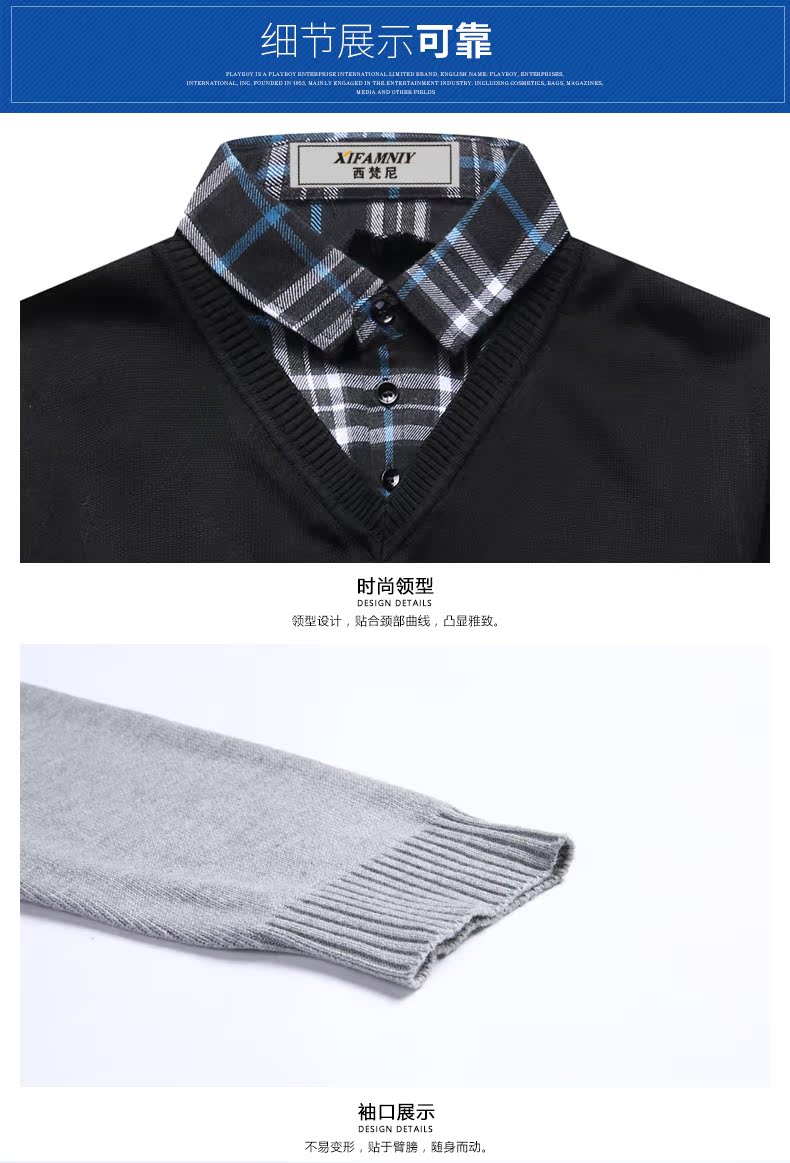 青年男士带领毛衣衬衣两件套假领羊毛衫秋冬款潮流2019上衣服潮流