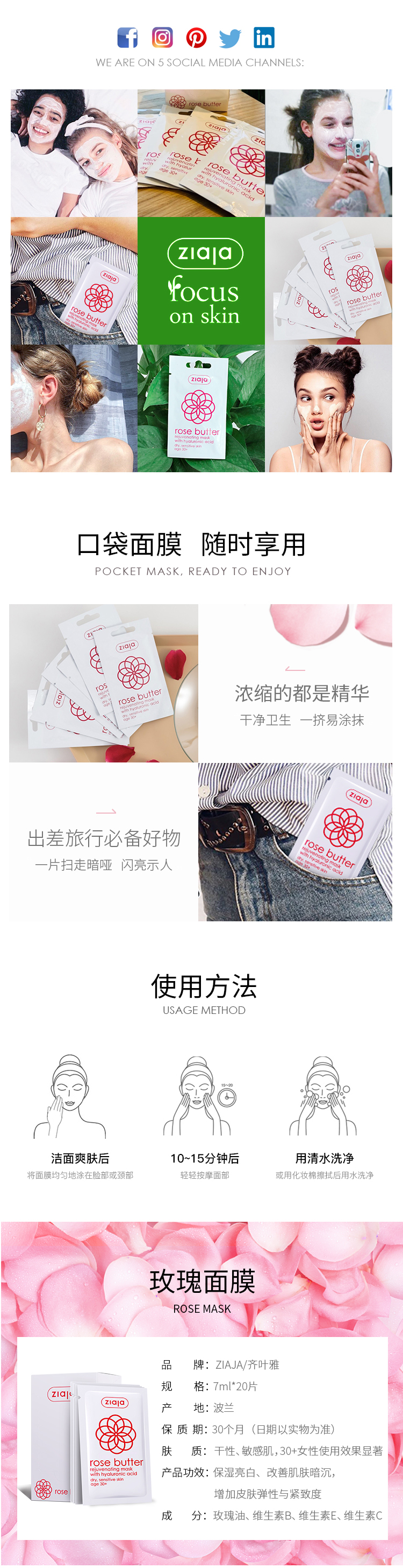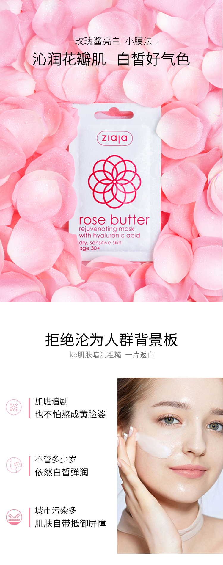 波兰齐叶雅ZIAJA玫瑰面膜补水润白美肤提亮保湿玻尿酸涂抹正品女