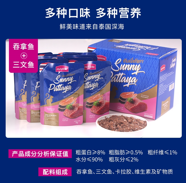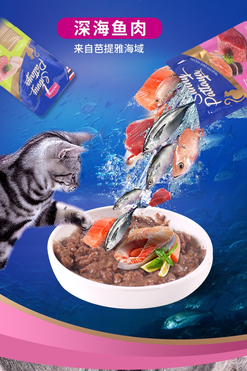 天猫正品保证,麦富迪高端款,来自泰国芭提雅的湿粮包,鲜美汤冻,保护视力,亮泽背毛,营养丰富,猫猫爱吃