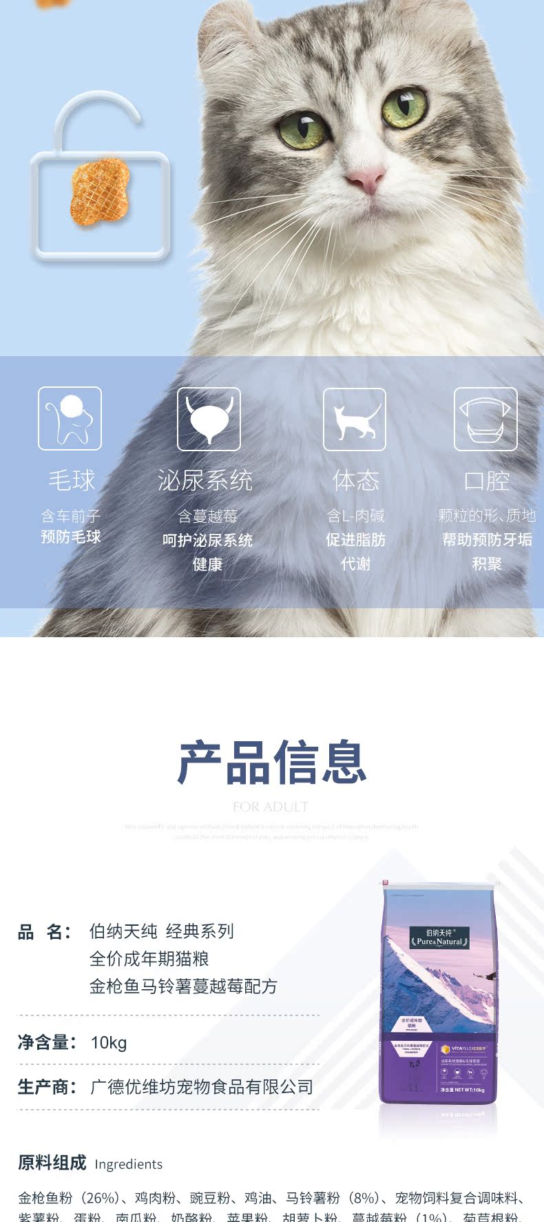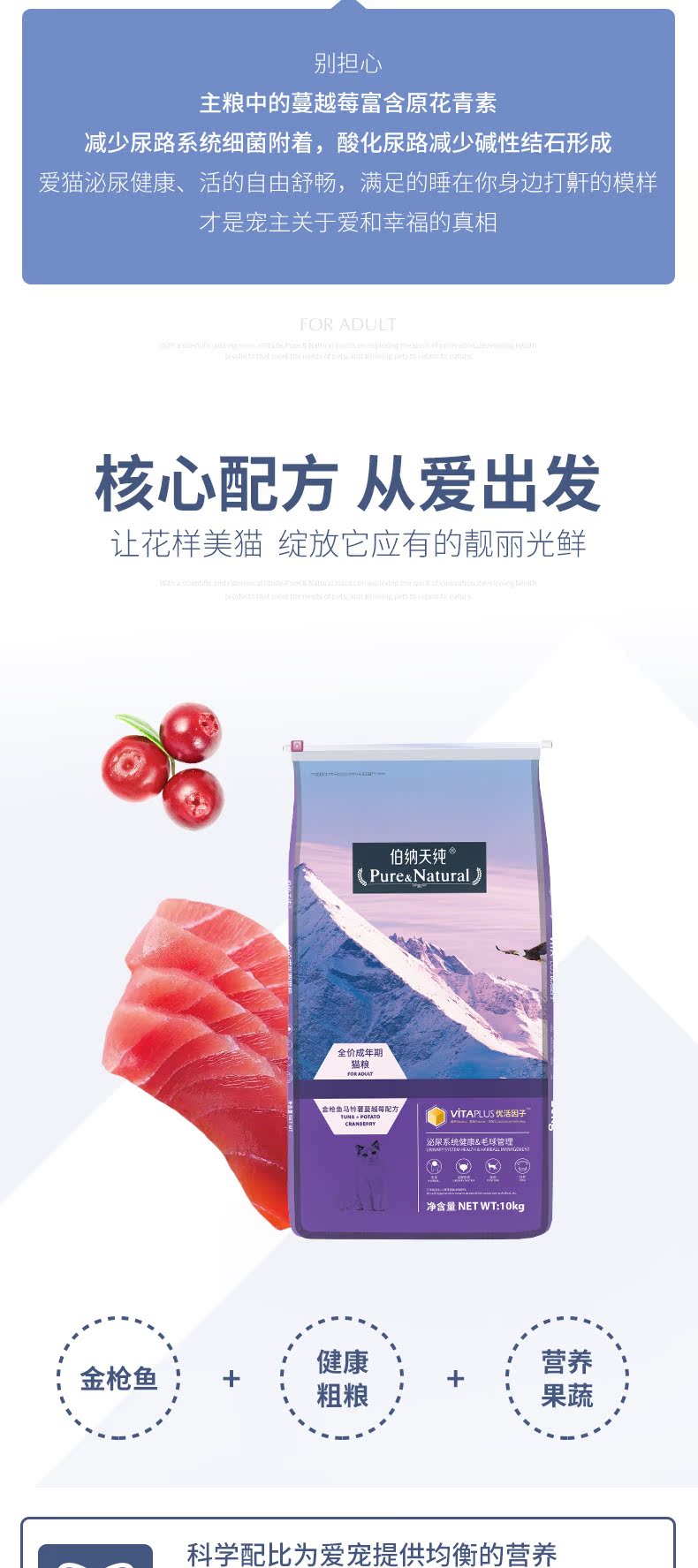 伯纳天纯猫粮10kg成猫无谷低敏粮英美短蓝猫博纳天纯金枪鱼粮20斤