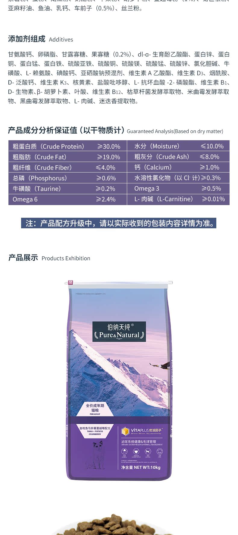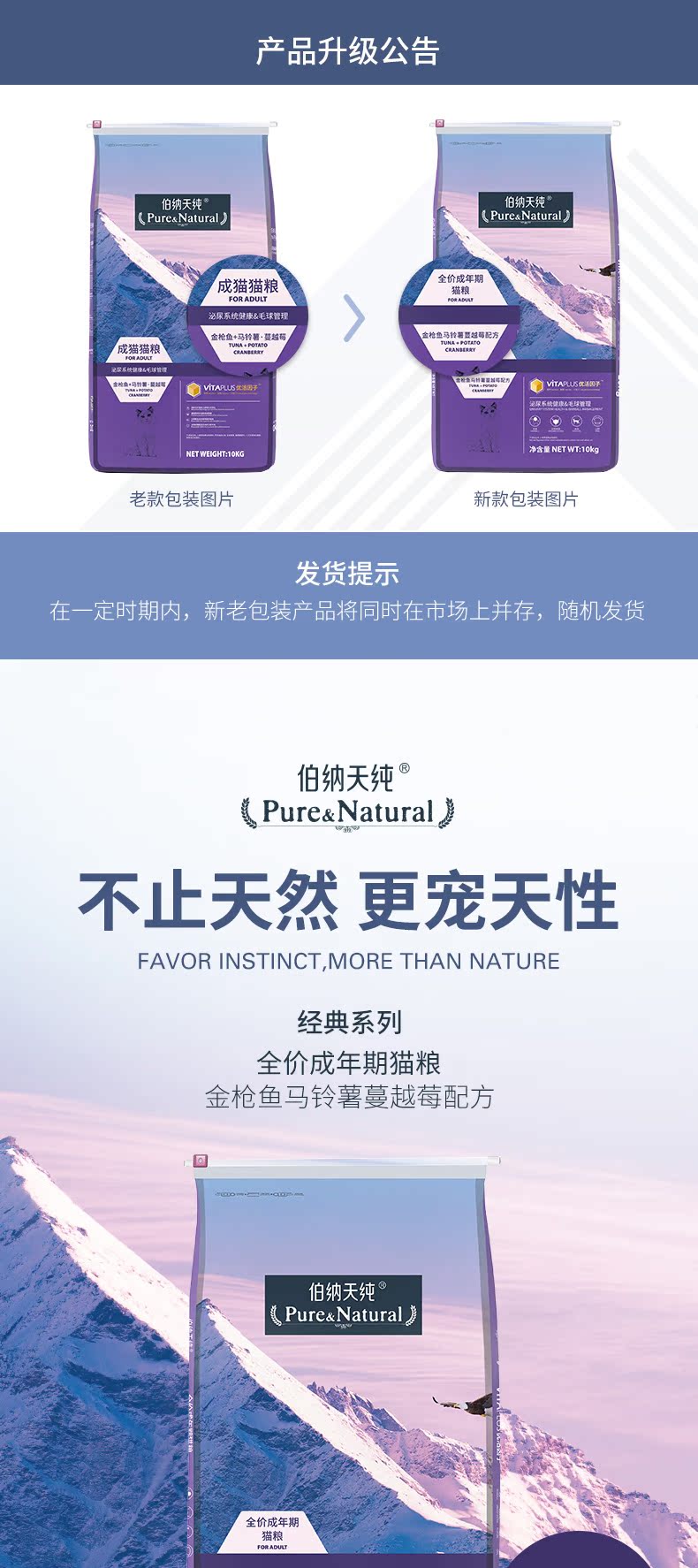 伯纳天纯经典系列,线下门店同款,无谷低敏含肉多,添加沙丁鱼+紫薯+蔓越莓,易消化易吸收,猫咪爱吃。