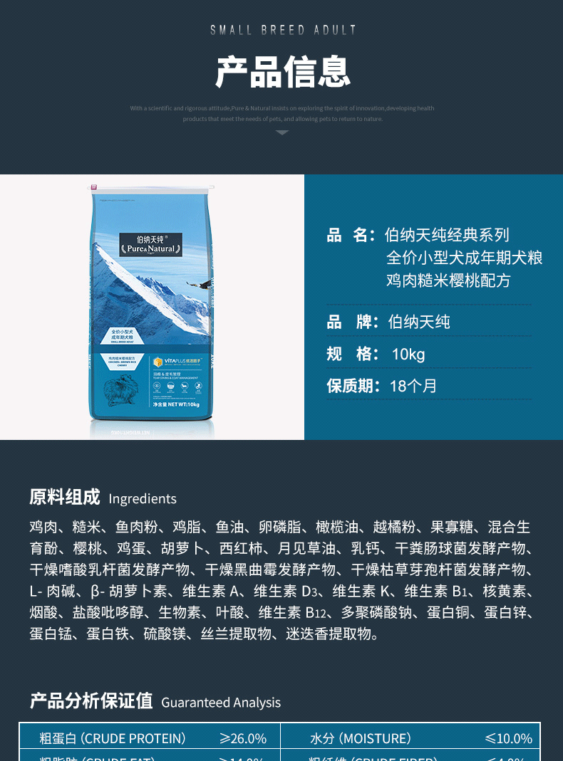 伯纳天纯泰迪小型犬成犬粮10kg无谷粮贵宾雪纳瑞博纳天纯宠物狗粮