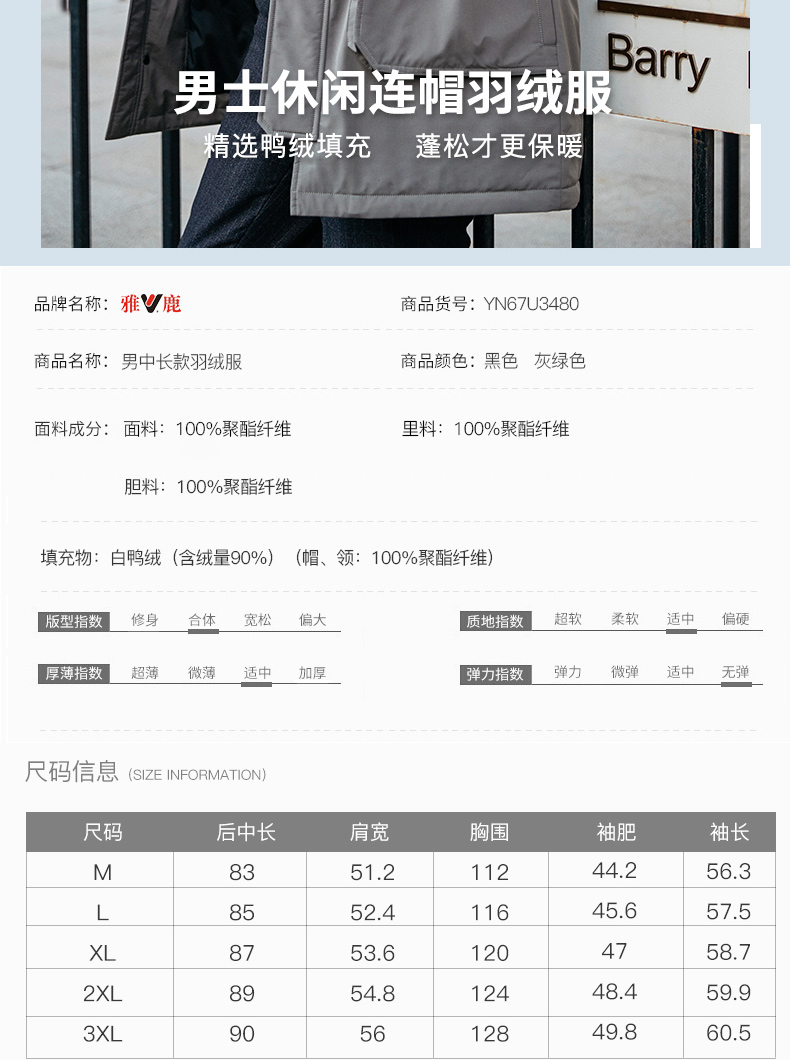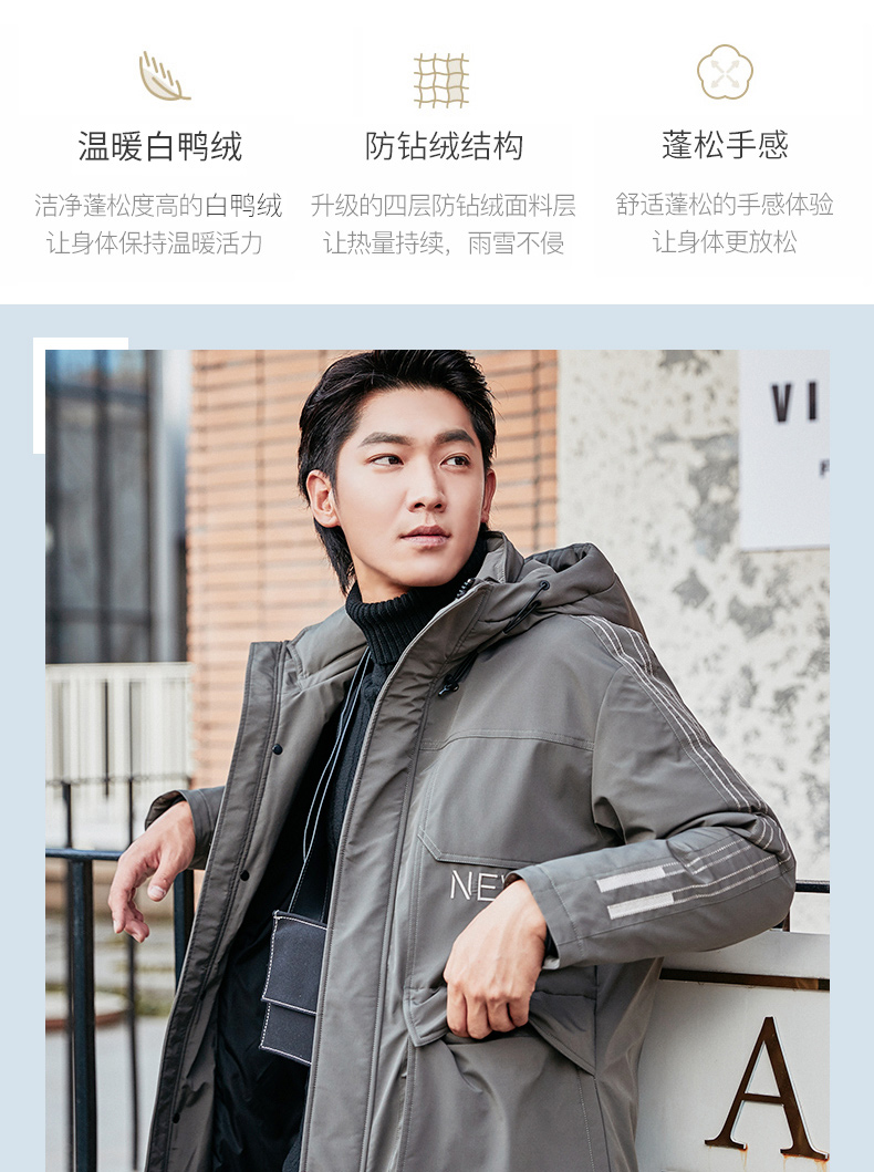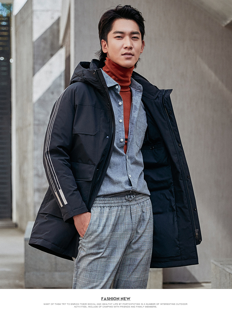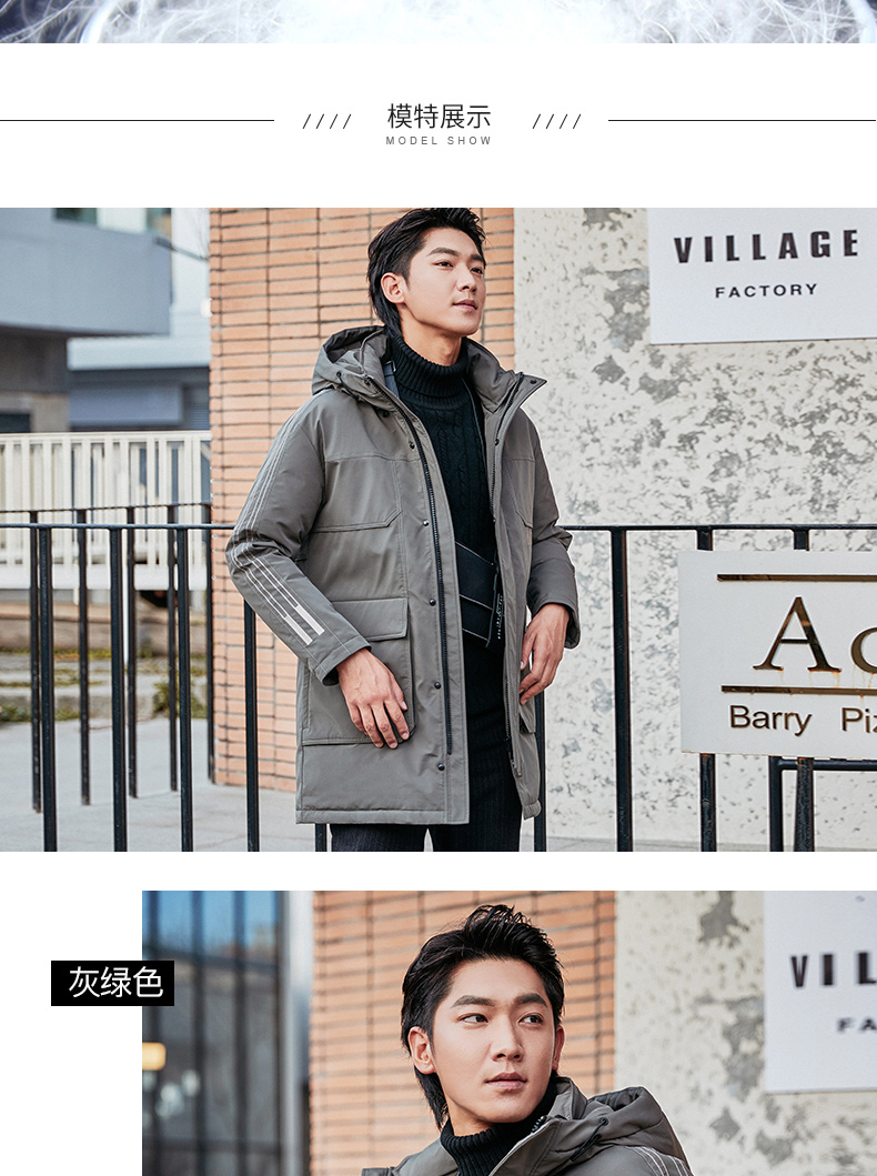 yaloo/雅鹿羽绒服男中长款连帽加厚外套冬季款青年商务保暖防寒服