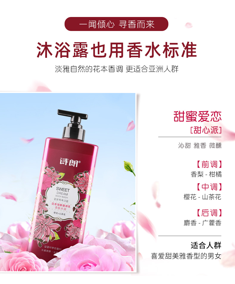 诗朗花本香水沐浴露香体持久留香男女通用非美白香氛沐浴乳家庭装