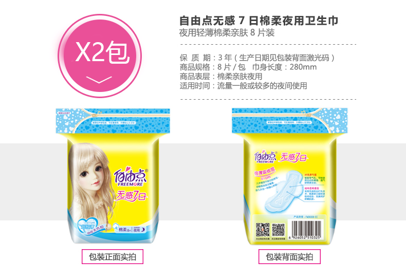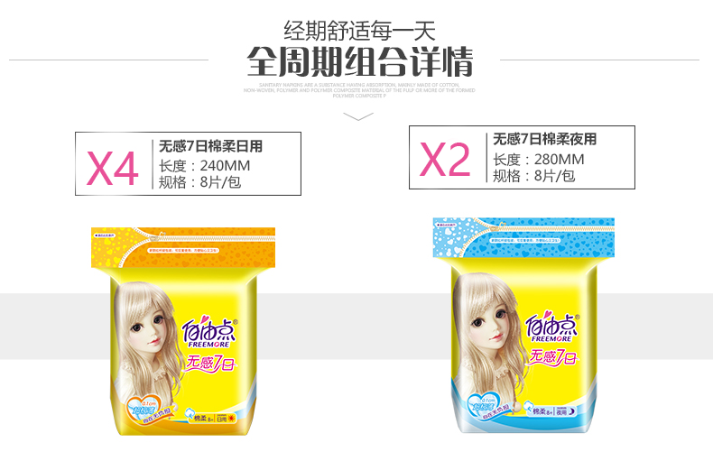 自由点卫生巾日用夜用组合装迷你巾套装超薄无感棉柔姨妈巾批发