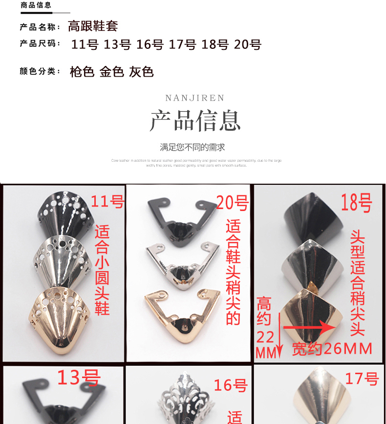 鞋尖保护头防踢金属头保护鞋头装饰尖头鞋高跟鞋破损修复遮瑕配件