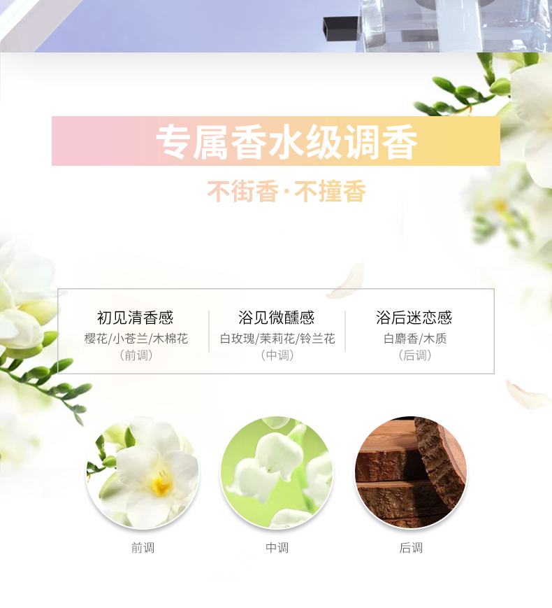 进口祖马龙小苍兰香氛,抖音快手主播热荐同款,国际调香师团队倾心打造,高贵淡雅怡人,挑战72小时持久留香,深层温和洁净,滋润肌肤,补水保湿,改善肤质,轻松洗出香、嫩、滑,令肌肤水润嫩白