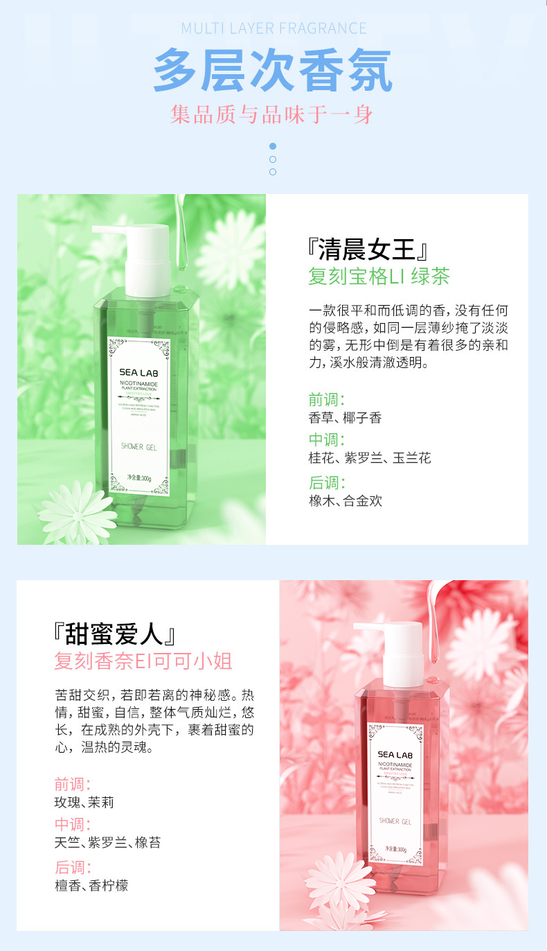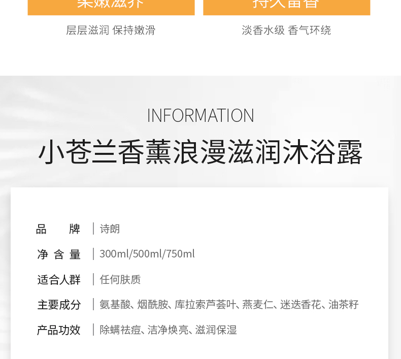 诗朗网红小苍兰香水香氛沐浴露沐浴乳香体持久留香男女通用家庭装