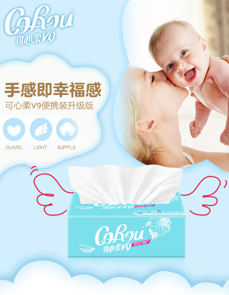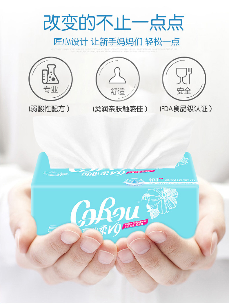 【可心柔6包120抽家庭装】可心柔v9婴儿柔纸巾,超韧柔软,长效保湿,快速锁水不易破,FDA食品级认证,母婴可用更安心!弱酸性配方,更适合宝宝娇嫩肌肤,万千妈妈的放心选择。【赠运费险】