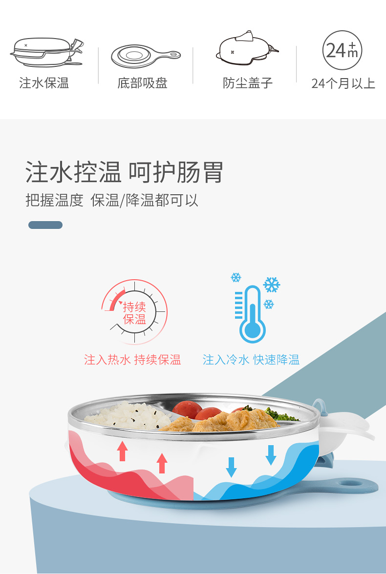 禾果宝宝儿童碗餐具。速抢【前一千名下单送儿童学习快子】,注水保温呵护肠胃,强力吸盘不怕打翻,进口304不锈钢,抵御微生物滋生,注水漏斗,密封硅胶塞,宝宝的专属餐盘!【赠运费险】