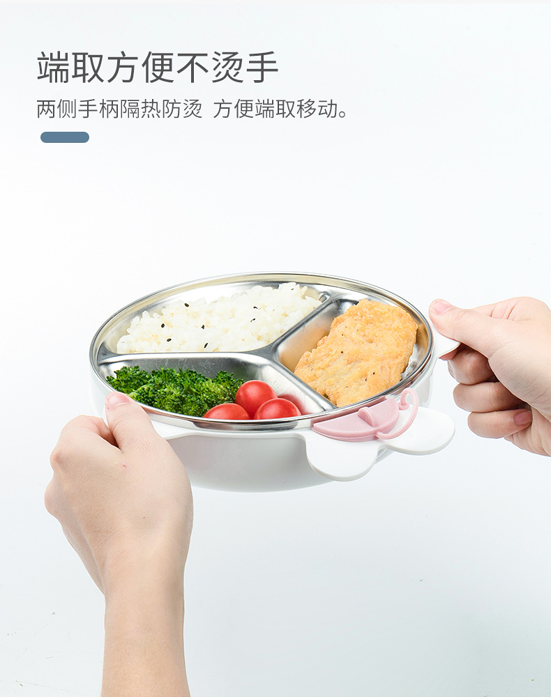 禾果儿童吸盘注水碗宝宝吃饭保温防摔分格不锈钢辅食餐具餐盘碗