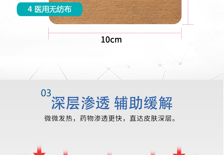 多种名贵中草药精制而成,适用于风湿性关节炎、腰椎间盘突出,跌打损伤,骨质增生,颈肩腰腿痛等远红外理疗,有效缓解疼痛,哪儿痛贴哪儿,口碑好效果佳,送什么都不如送健康来的实在。