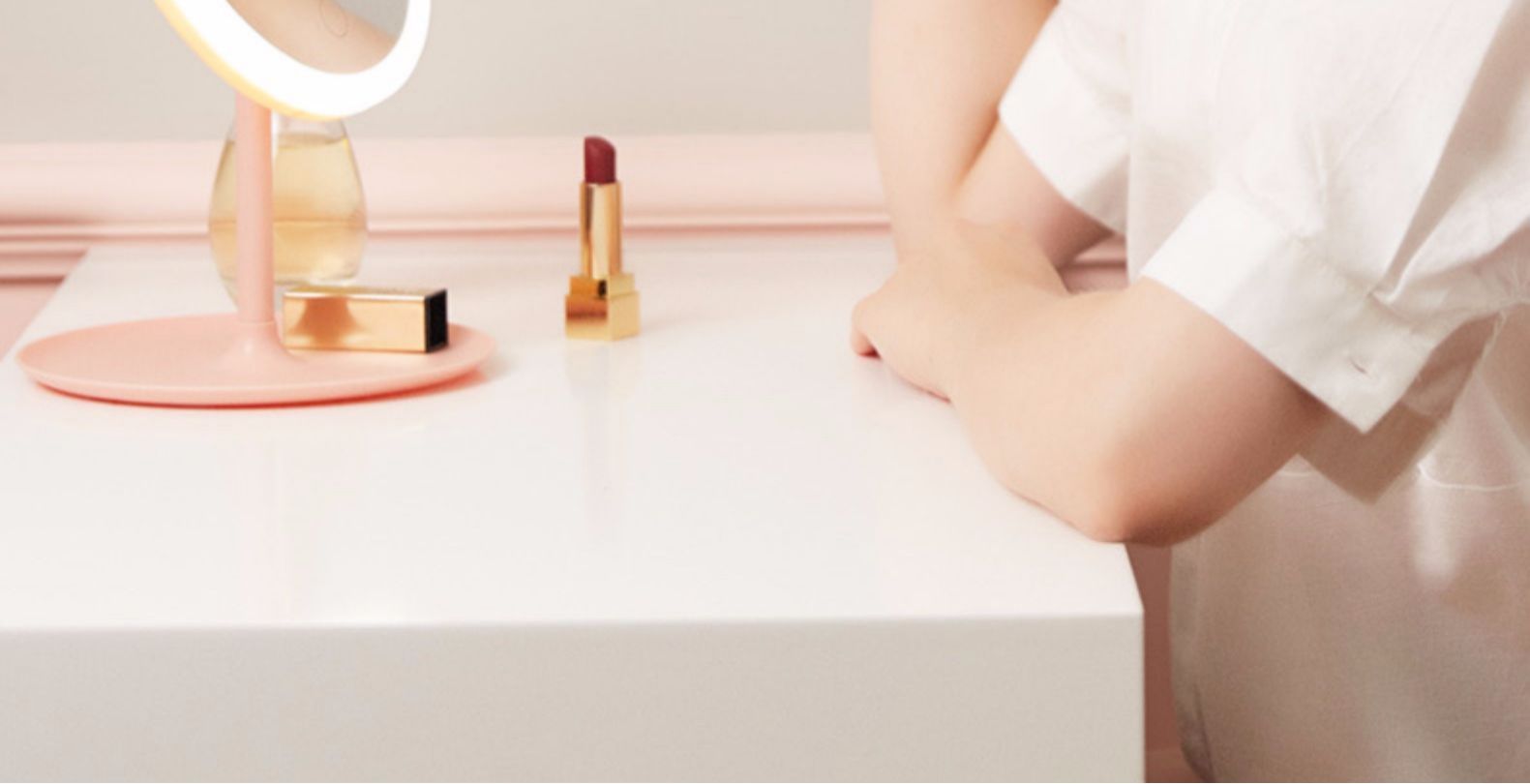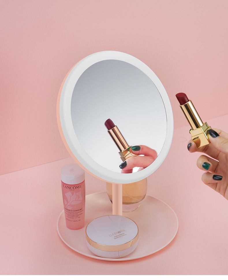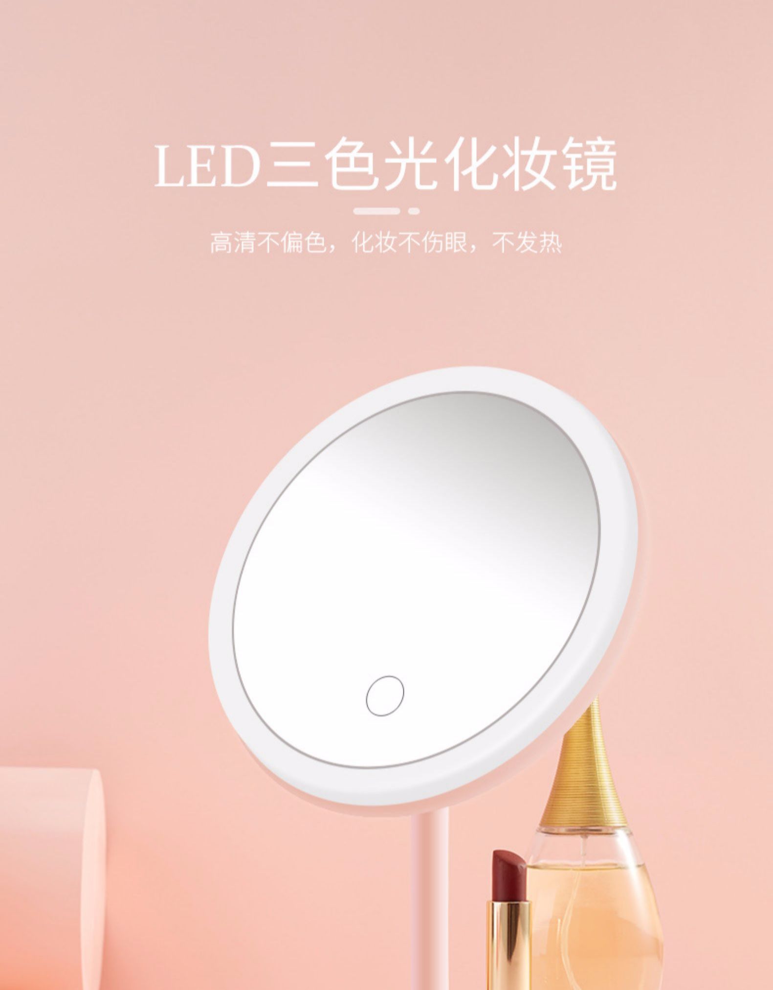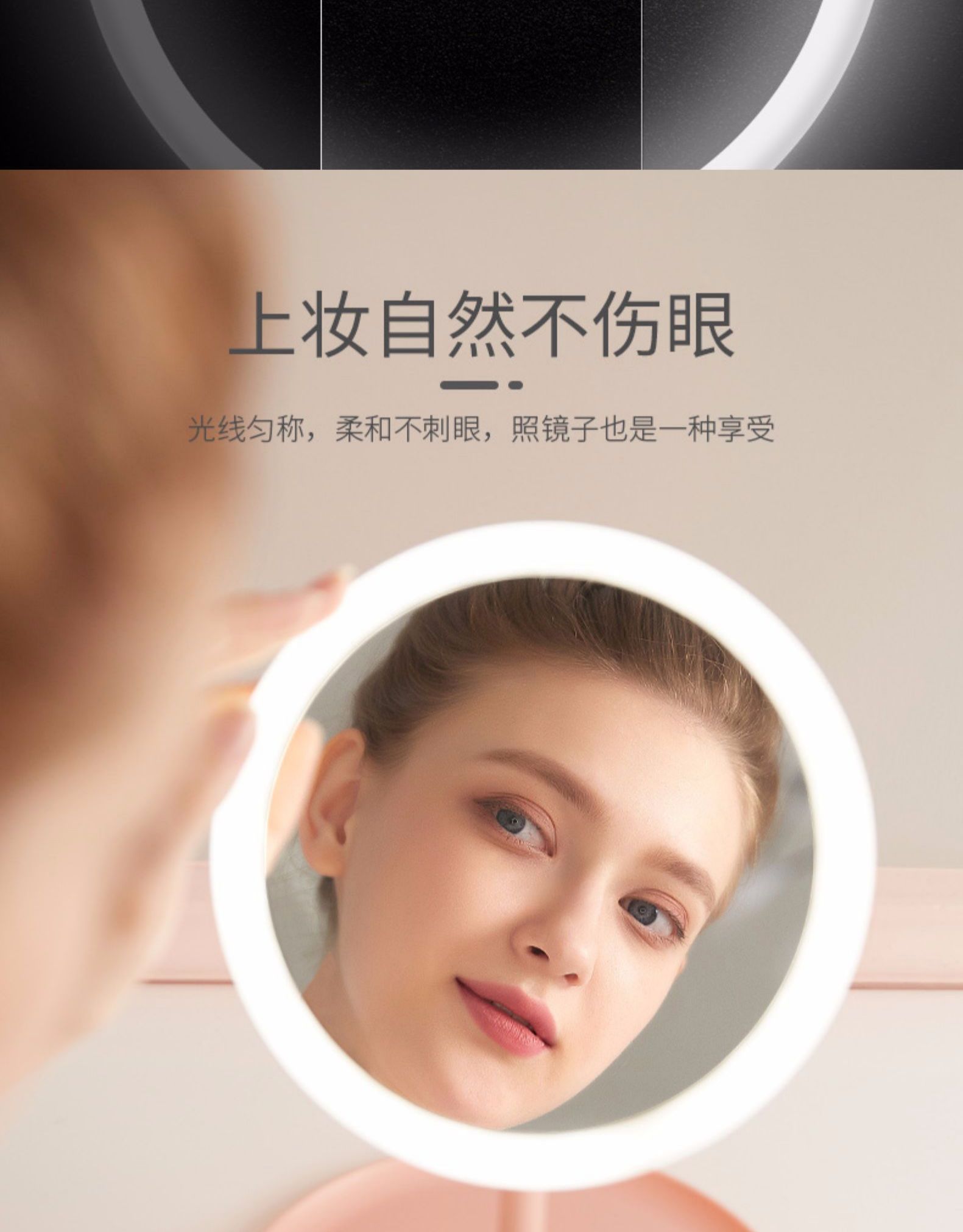 米选led化妆镜带灯补光宿舍台式梳妆镜女折叠网红随身便携小镜子