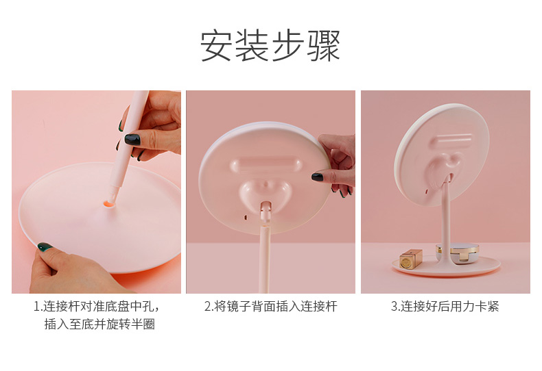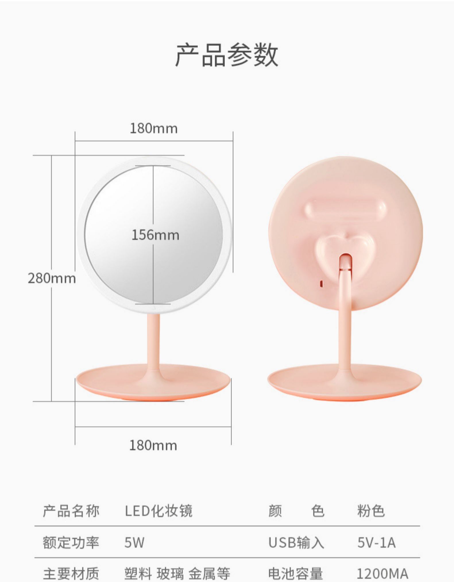 少女化妆镜!时尚大方让人无法拒绝~加大高清镜面,让你化妆更细致全面!造型小巧,便于携带,随时随地照亮你的美!