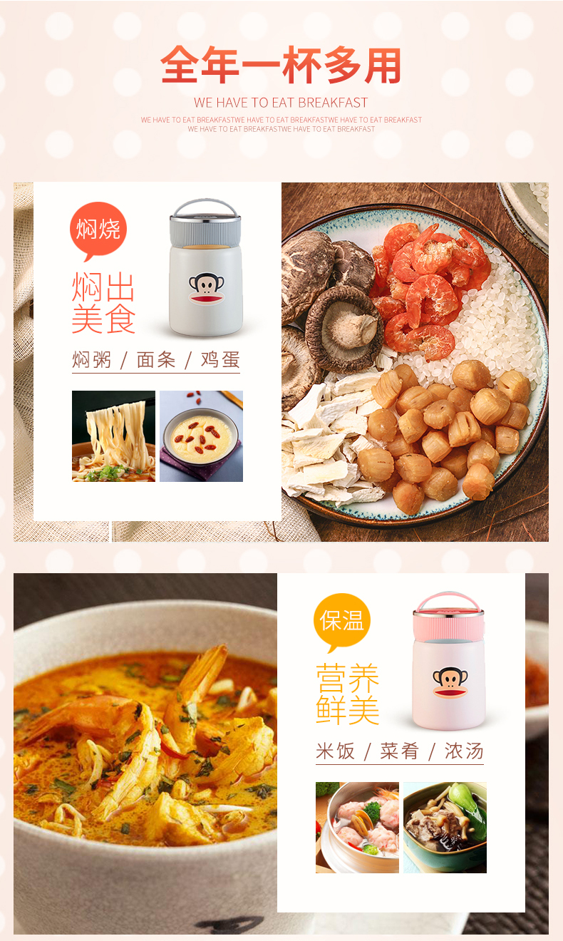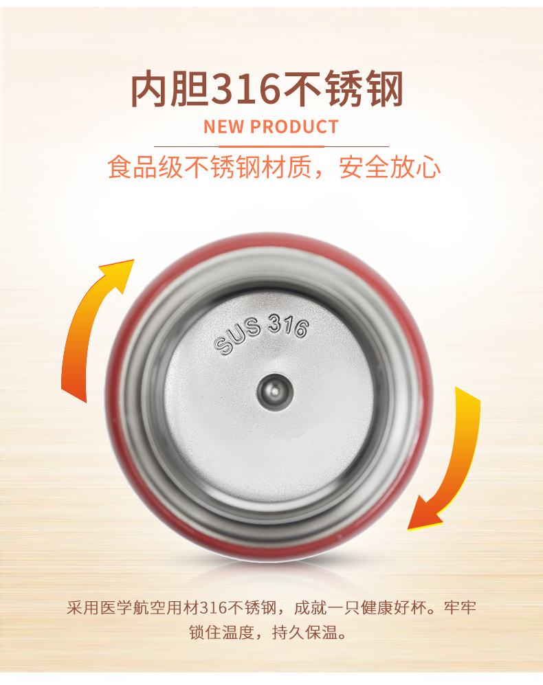 316食品级不锈钢内胆,48小时长效保温!保温+保冷+焖烧,焖粥带饭煲汤都可以!轻松吃上家庭便饭!360度密封防护安全健康~